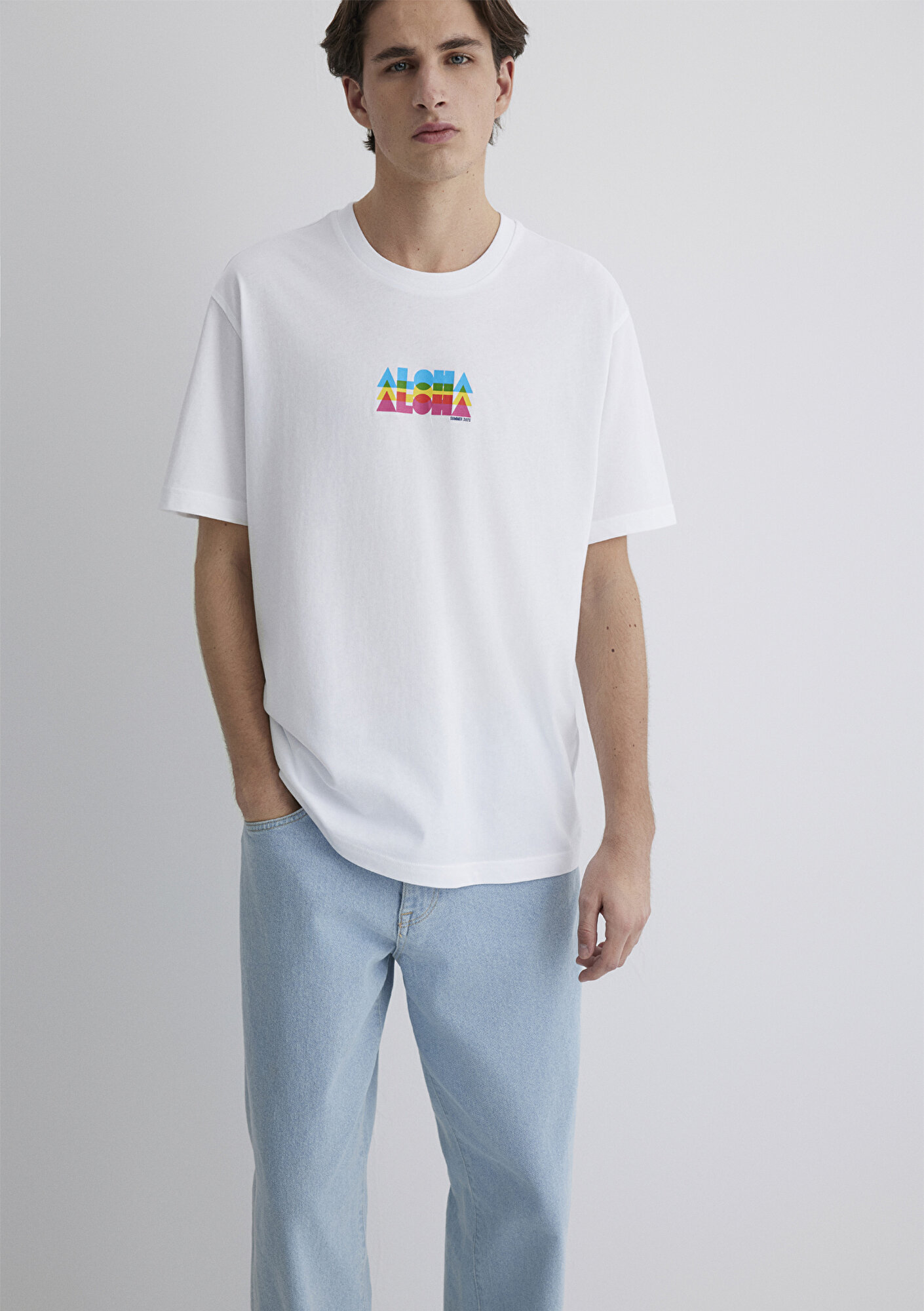 Mavi nin erkek koleksiyonundan Aloha Baskılı Beyaz Tişört.