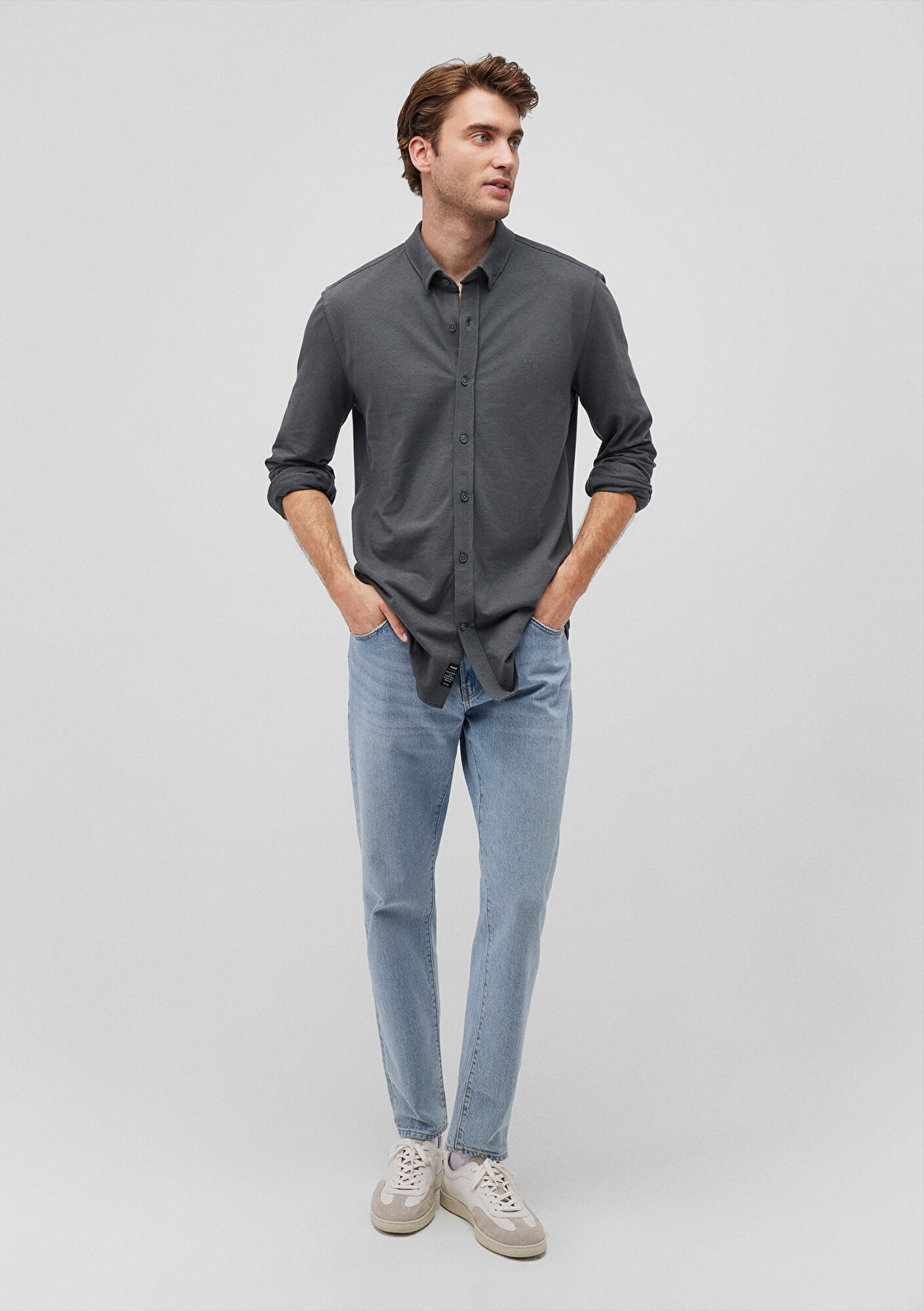 Mavi nin erkek koleksiyonundan Antrasit Örme Gömlek. Gizli düğmeli yaka.