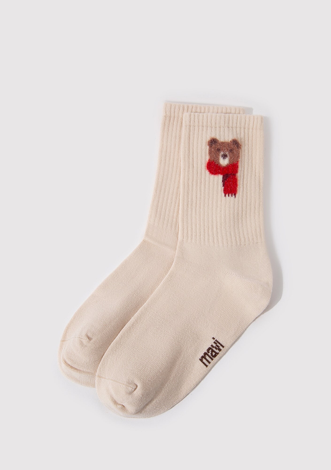 Mavi nin denim koleksiyonundan Ayı Baskılı Beyaz Soket Çorap