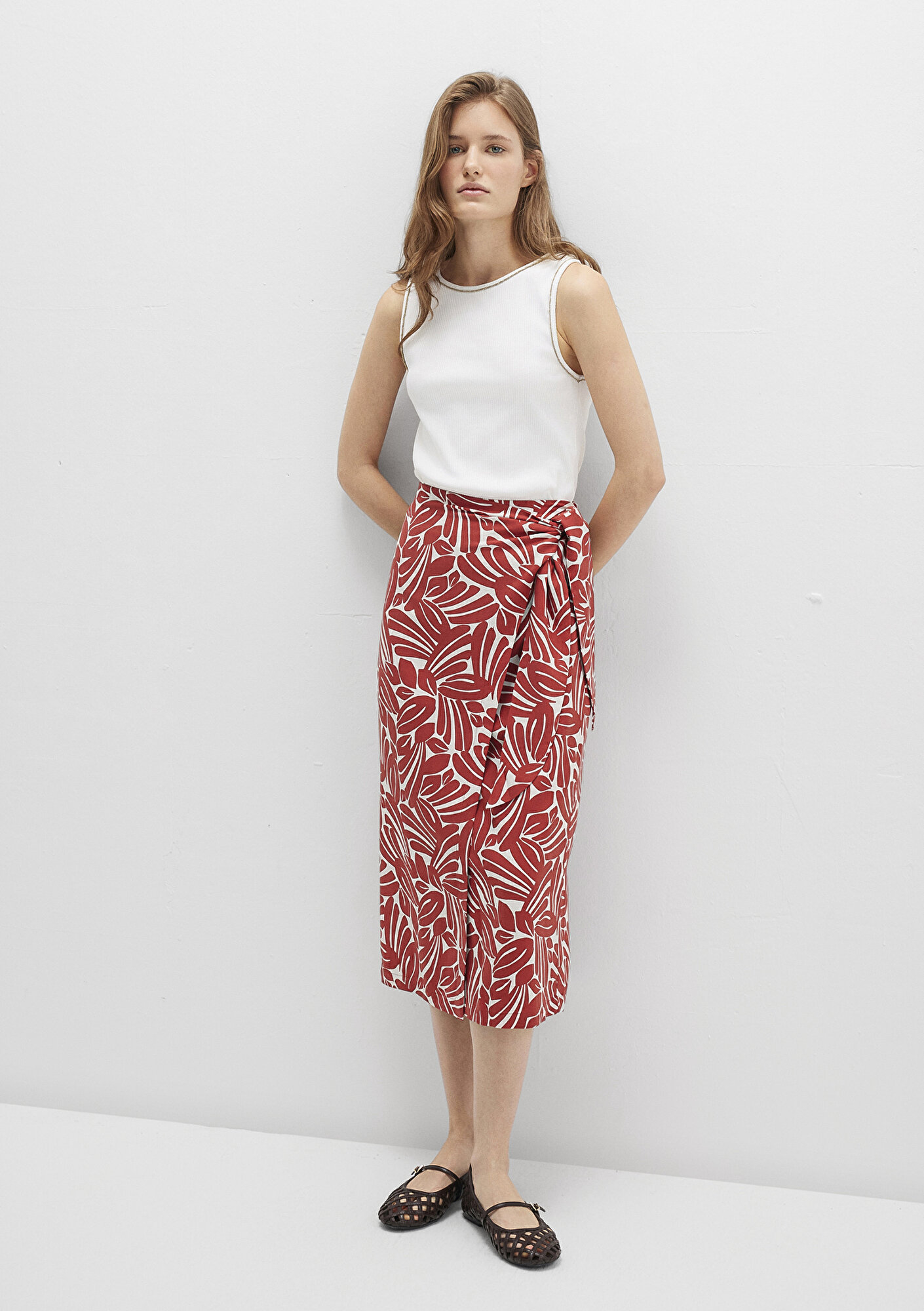 Mavi nin Linen Touch koleksiyonundan Bağlama Detaylı Baskılı Kırmızı Etek.