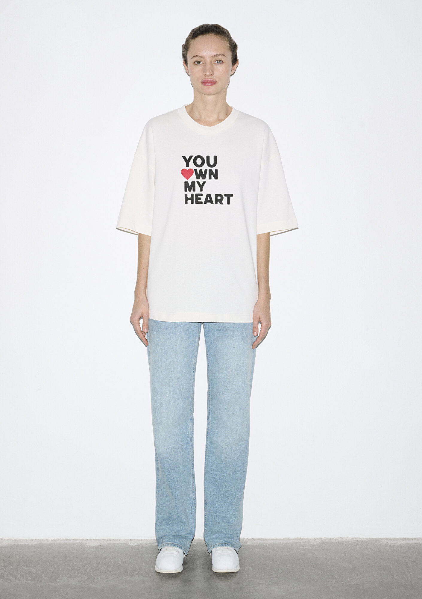 Mavi Baskılı Beyaz Tişört Oversize / Geniş Kesim 0613253-83043