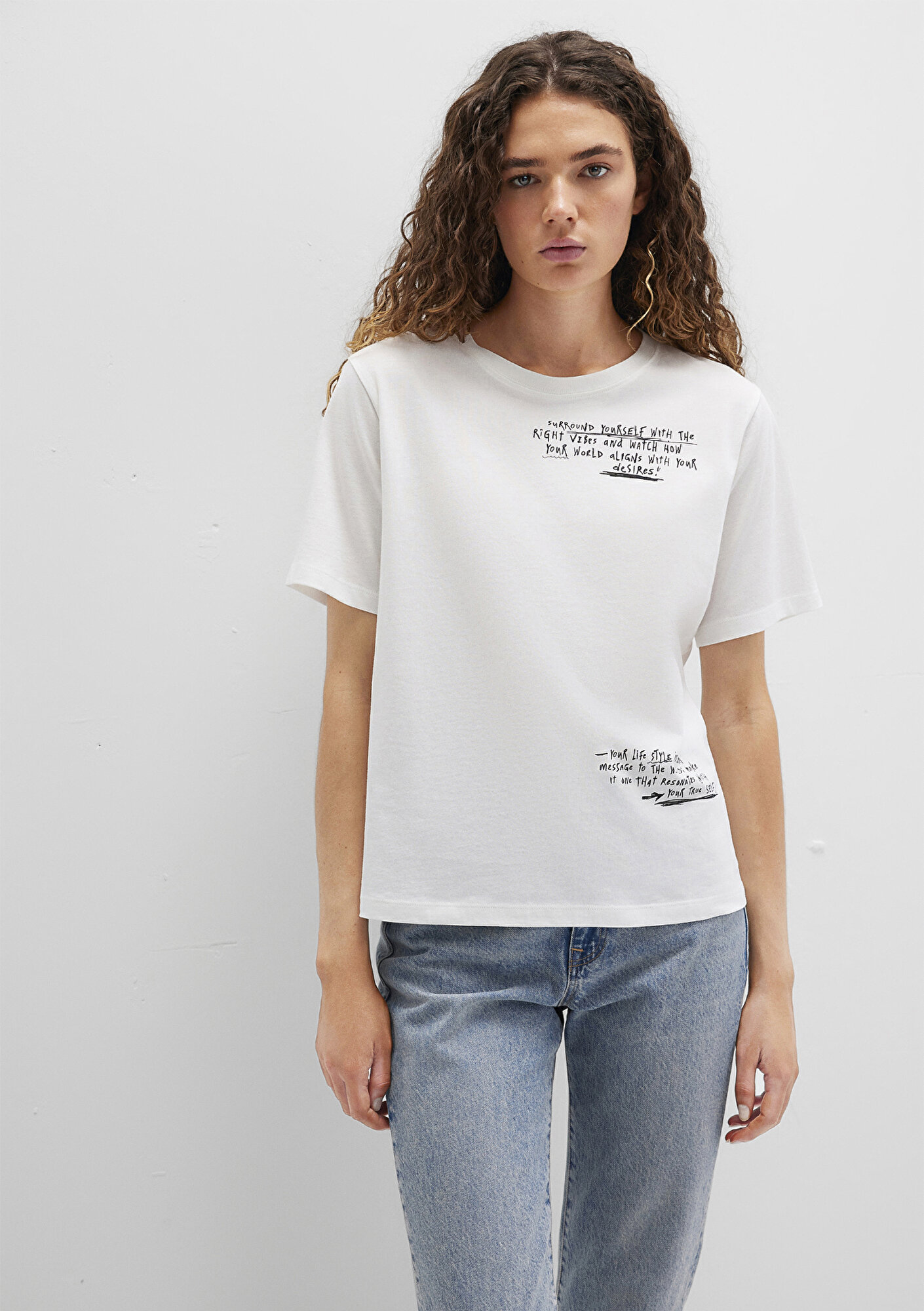Mavi nin kadın koleksiyonundan Baskılı Beyaz Tişört.