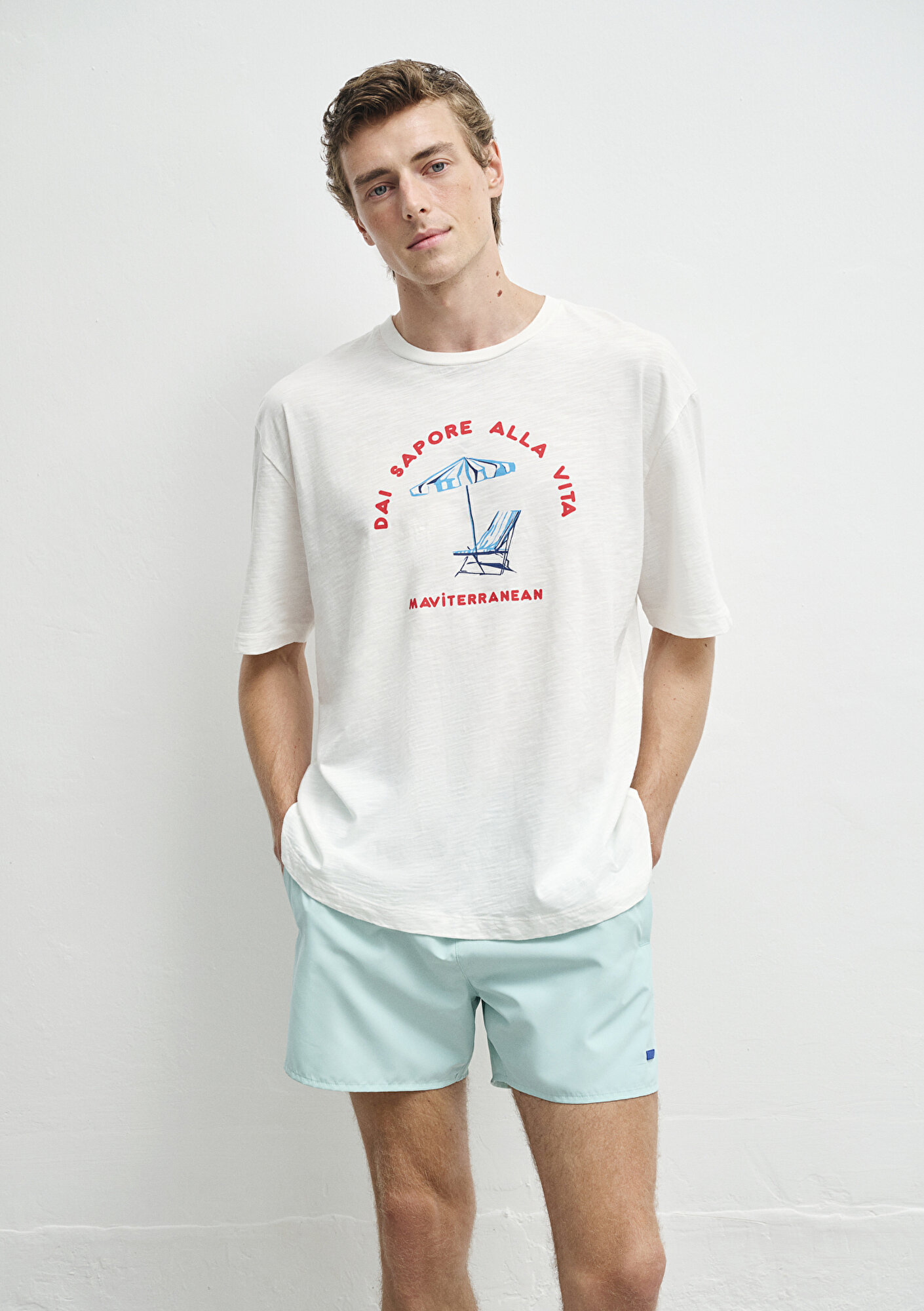 Mavi nin Maviterranean Koleksiyonundan Baskılı Beyaz Tişört. Mavi nin Akdenizli ruhundan ilham alan yazın gelişini kutlayan yeni Maviterranean Koleksiyonu seni kendi yaz hikayeni yazmaya davet ediyor.