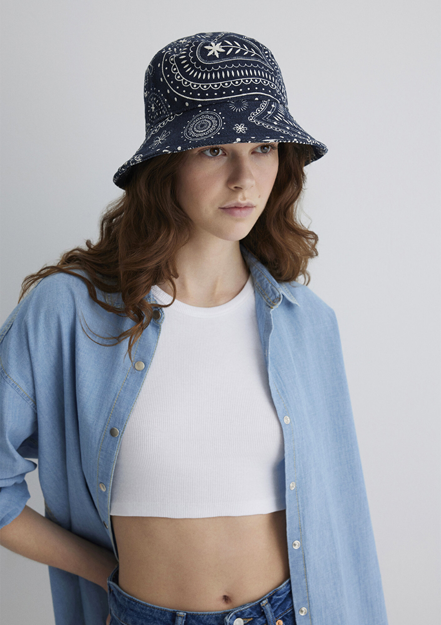 Mavi nin aksesuar koleksiyonundan Baskılı Lacivert Bucket Şapka.