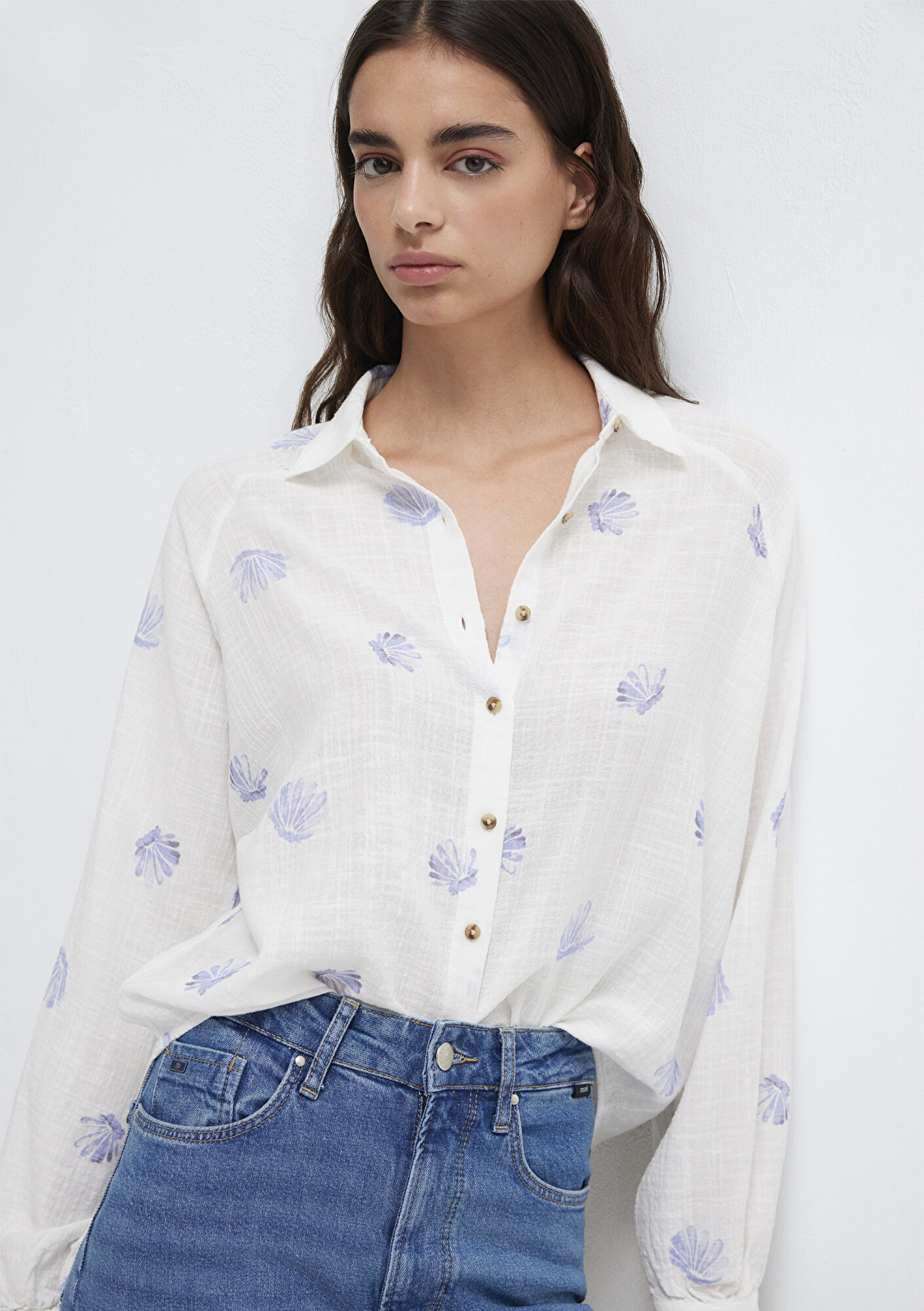 Mavi nin kadın koleksiyonundan Baskılı Mavi Gömlek.