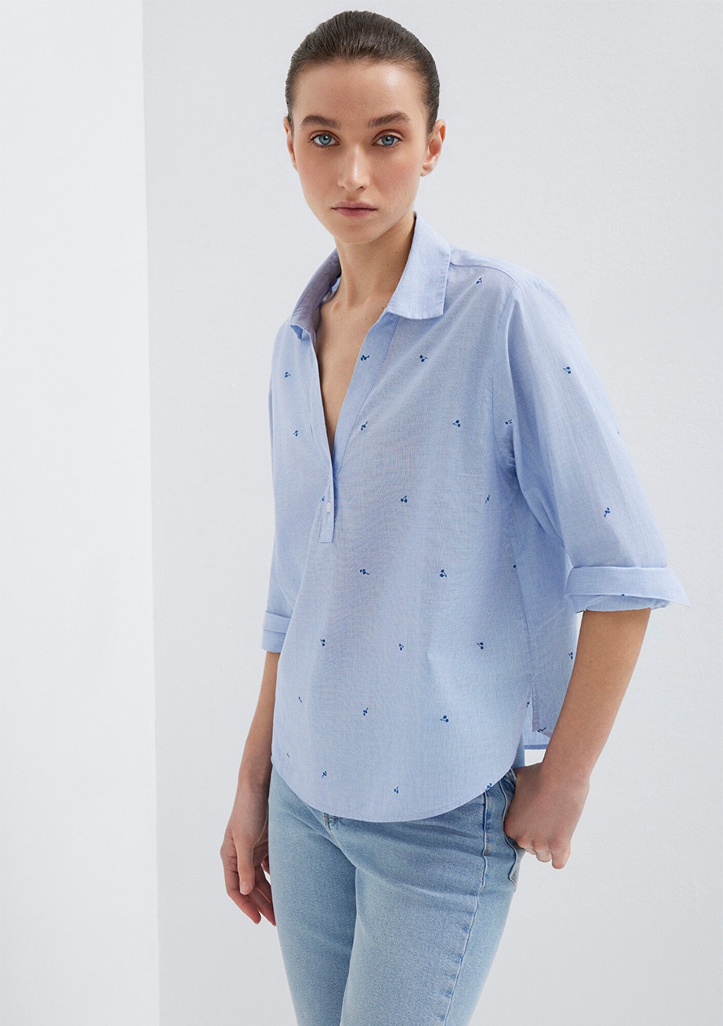 Mavi nin kadın koleksiyonundan Baskılı Mavi Gömlek.