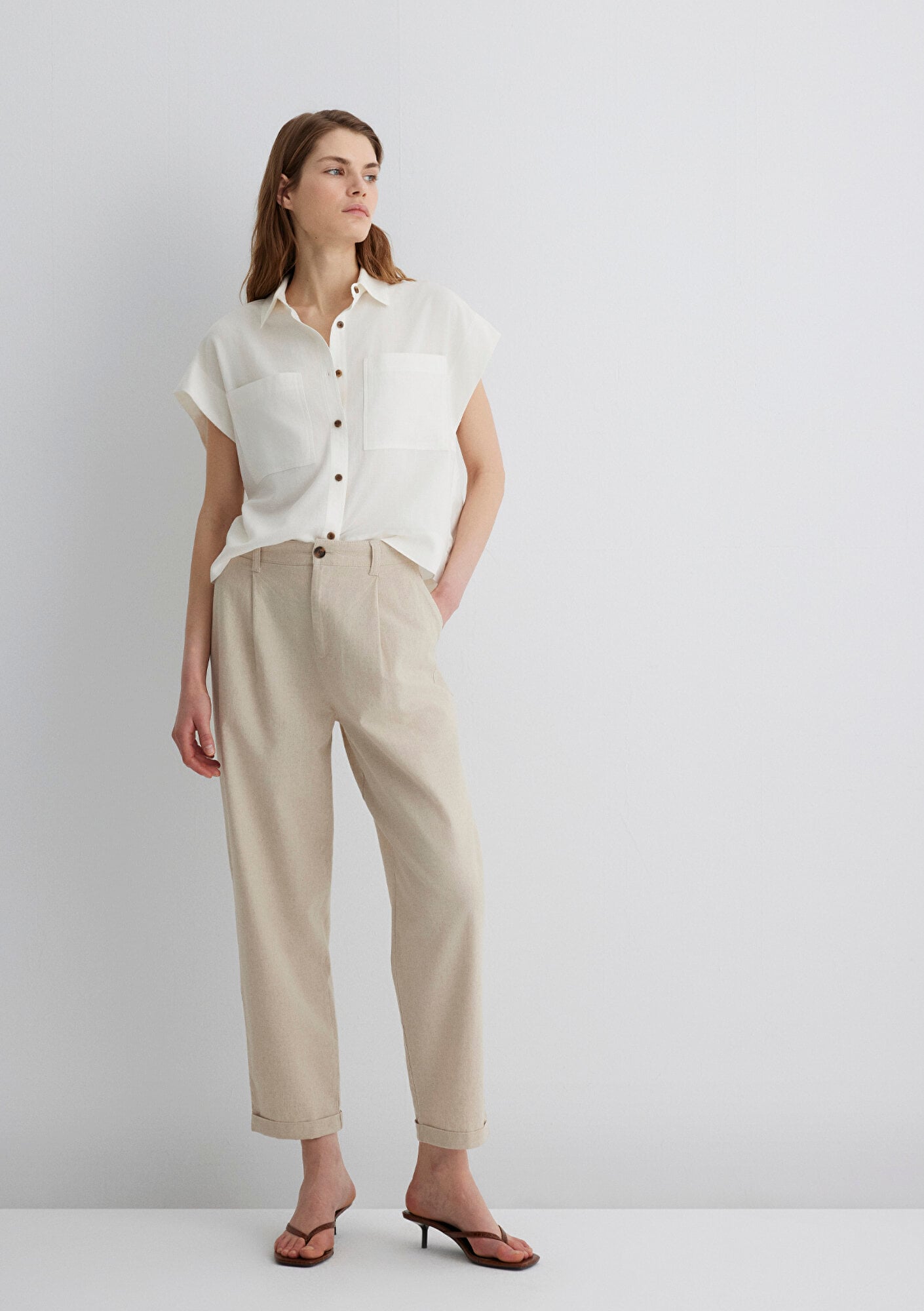 Mavi nin Linen Touch kolekisyonundan Bej Pantolon. Doğal bir elyaf olan keten kumaşlar, diğer kumaş türlerine göre çok daha dayanıklıdır. Nemi hapseden yapısıyla ve iri gözenekli dokumasıyla vücuda hava aldırır. Yansıtıcı özelliği sayesinde de güneşte renk solması gibi şikayetleri minimuma indiren ketenlerle, yaz mevsiminde hem serin hem de cool kalın.