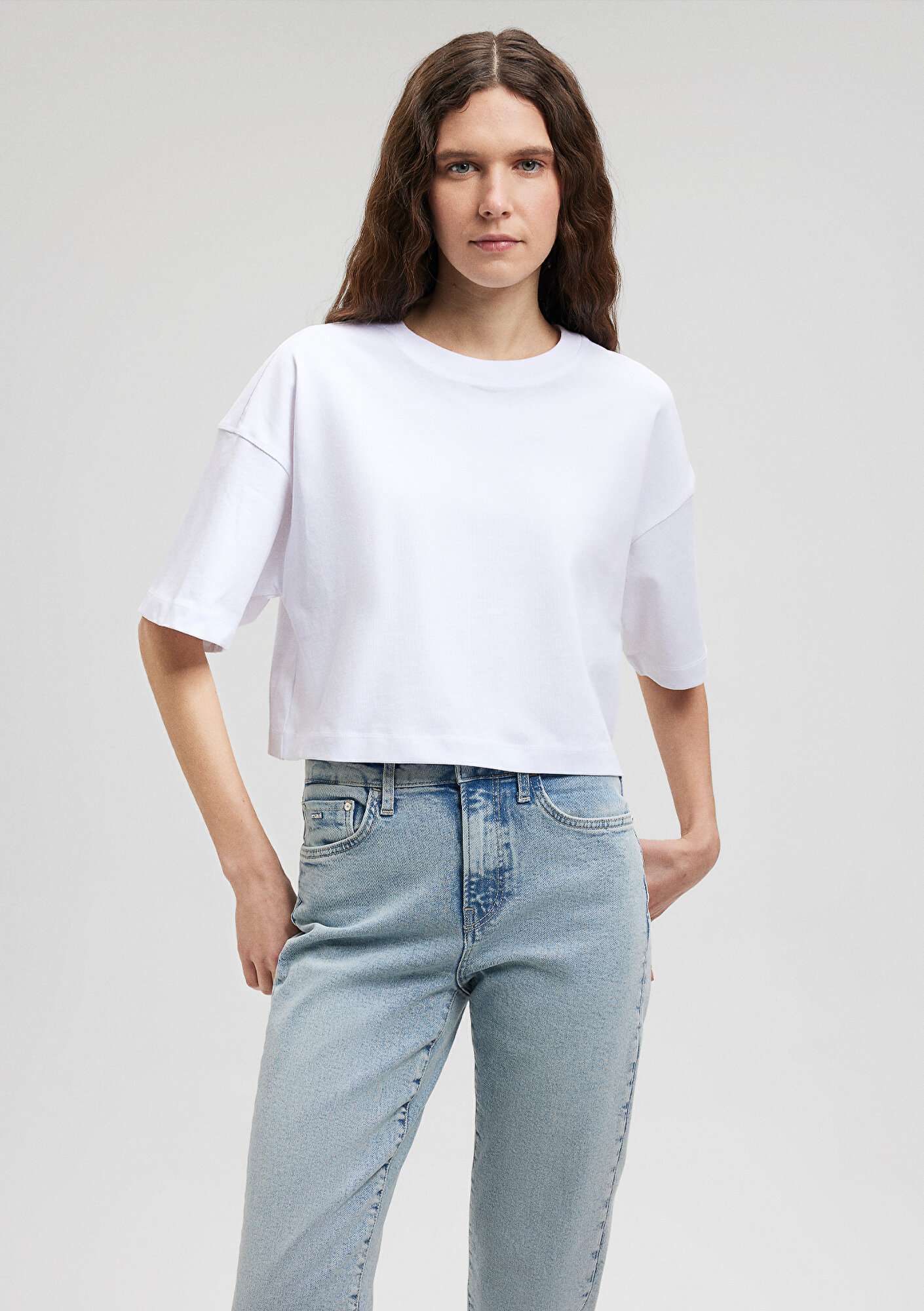 Mavi nin kadın koleksiyonundan Beyaz Basic Crop Tişört
