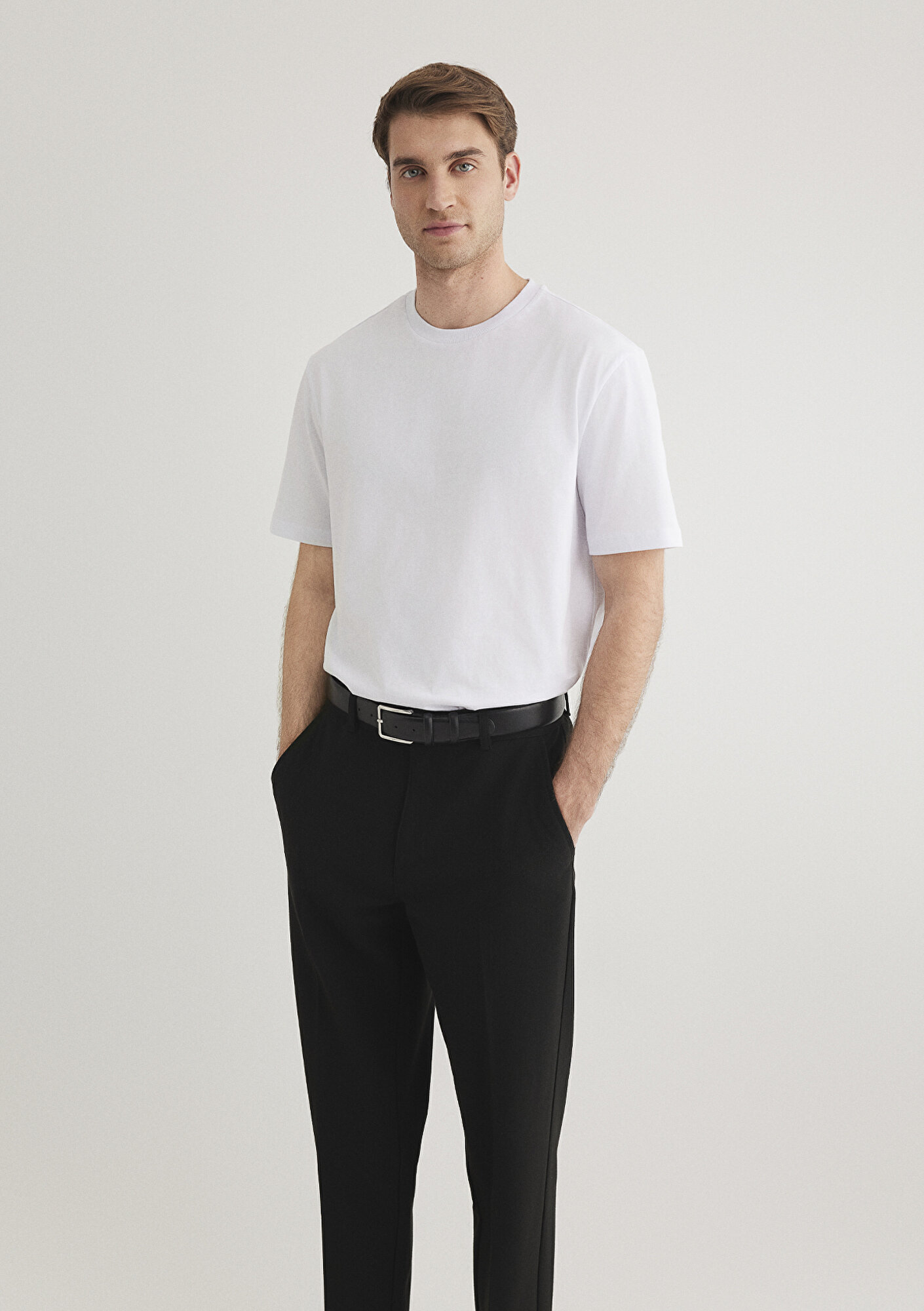 Yüzde yüz pamuk, slim fit, uzun kesim tişört. Bisiklet yaka. Kısa kol. Beyaz Basic Tişört.