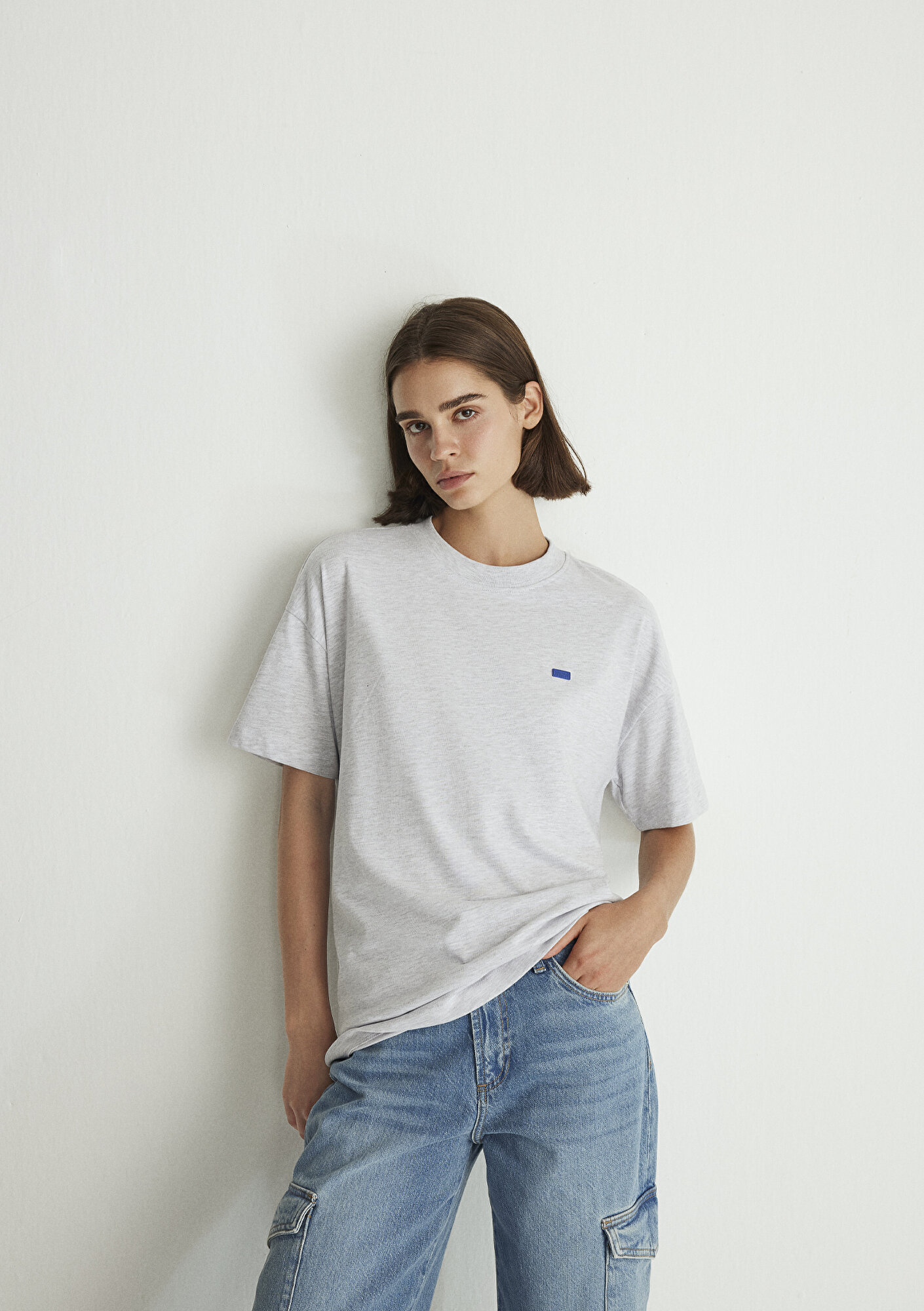 Mavi Bisiklet Yaka Basic Gri Tişört Loose Fit / Bol Rahat Kesim 1612188-80196