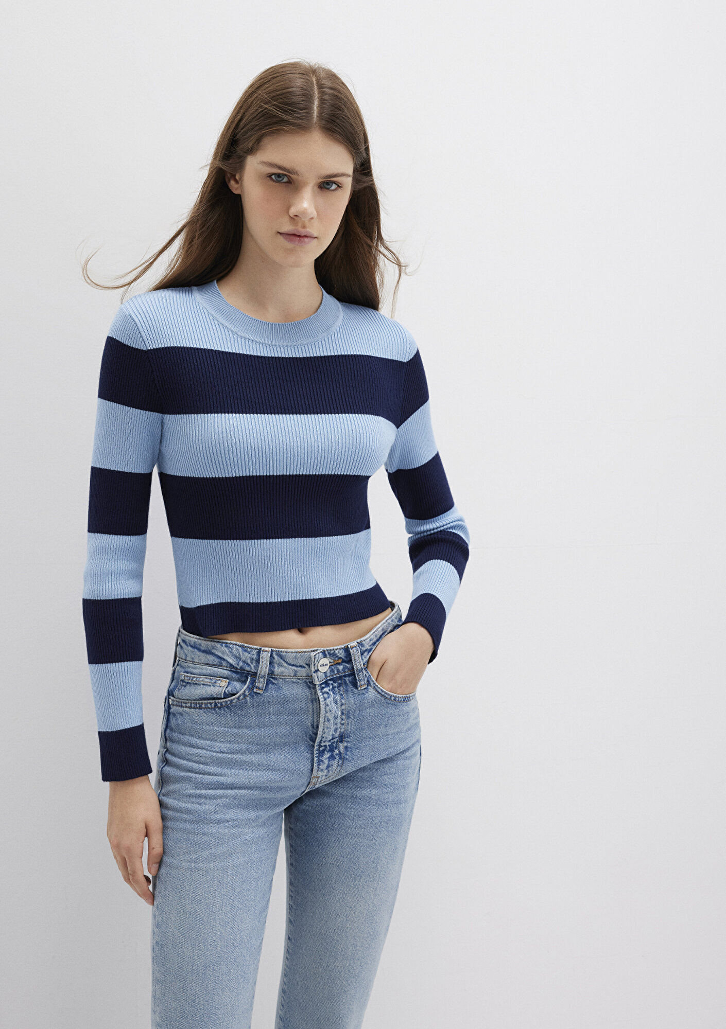 Mavi Blok Renkli Mavi Kazak Crop / Kısa Kesim 1710724-90702