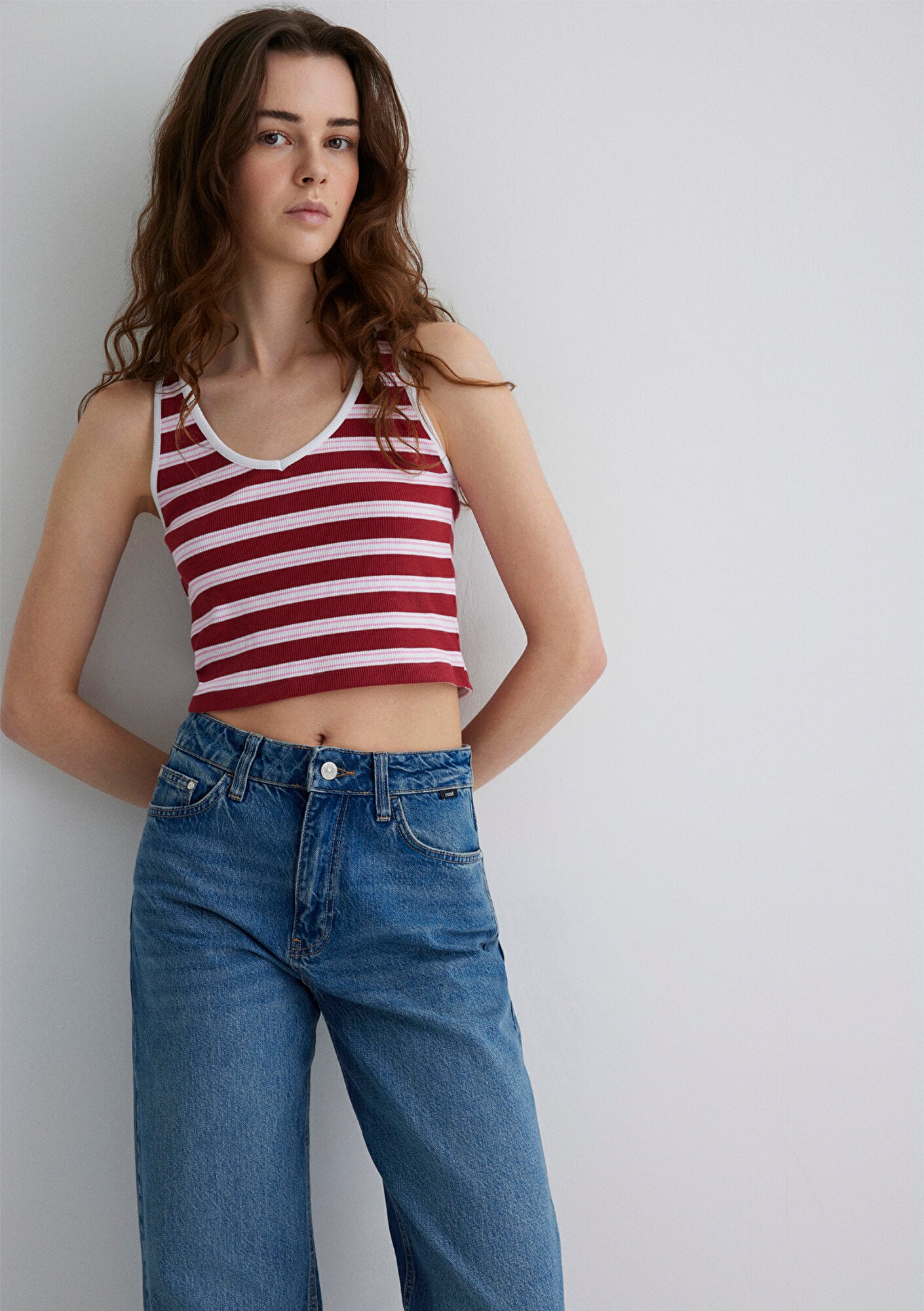 Mavi nin kadın koleksiyonundan Bordo Çizgili Crop Atlet.