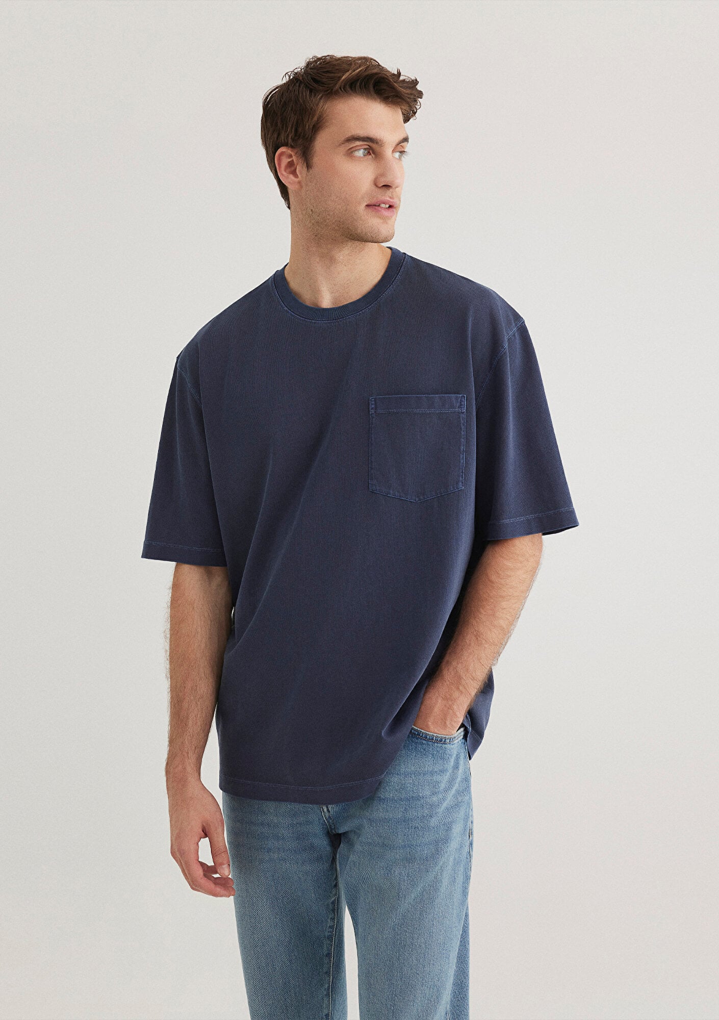 Mavi Cep Detaylı Lacivert Tişört Loose Fit / Bol Rahat Kesim 0612502-82183