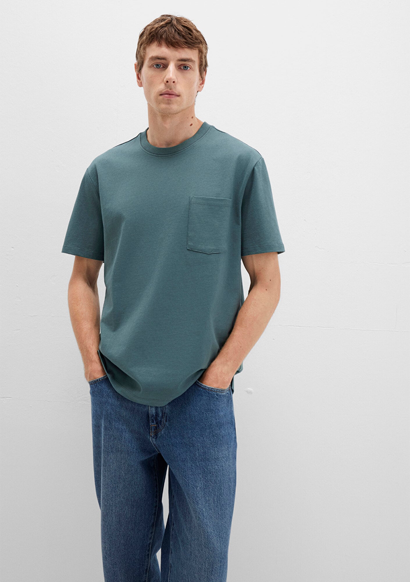 Yüzde yüz pamuk, loose fit, cep detaylı basic tişört. Bisiklet yaka. Kısa kol. Cep Detaylı Yeşil Basic Tişört.