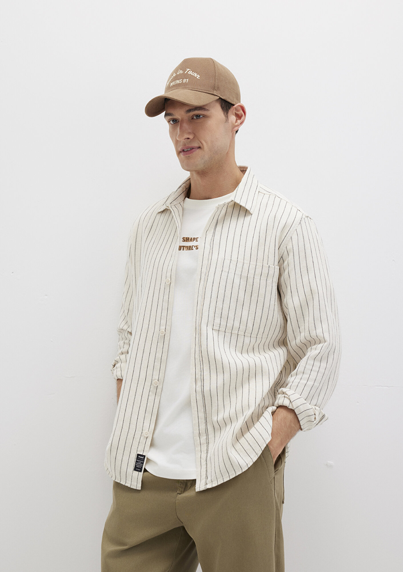 Mavi nin erkek koleksiyonundan Çizgili Bej Gömlek.
