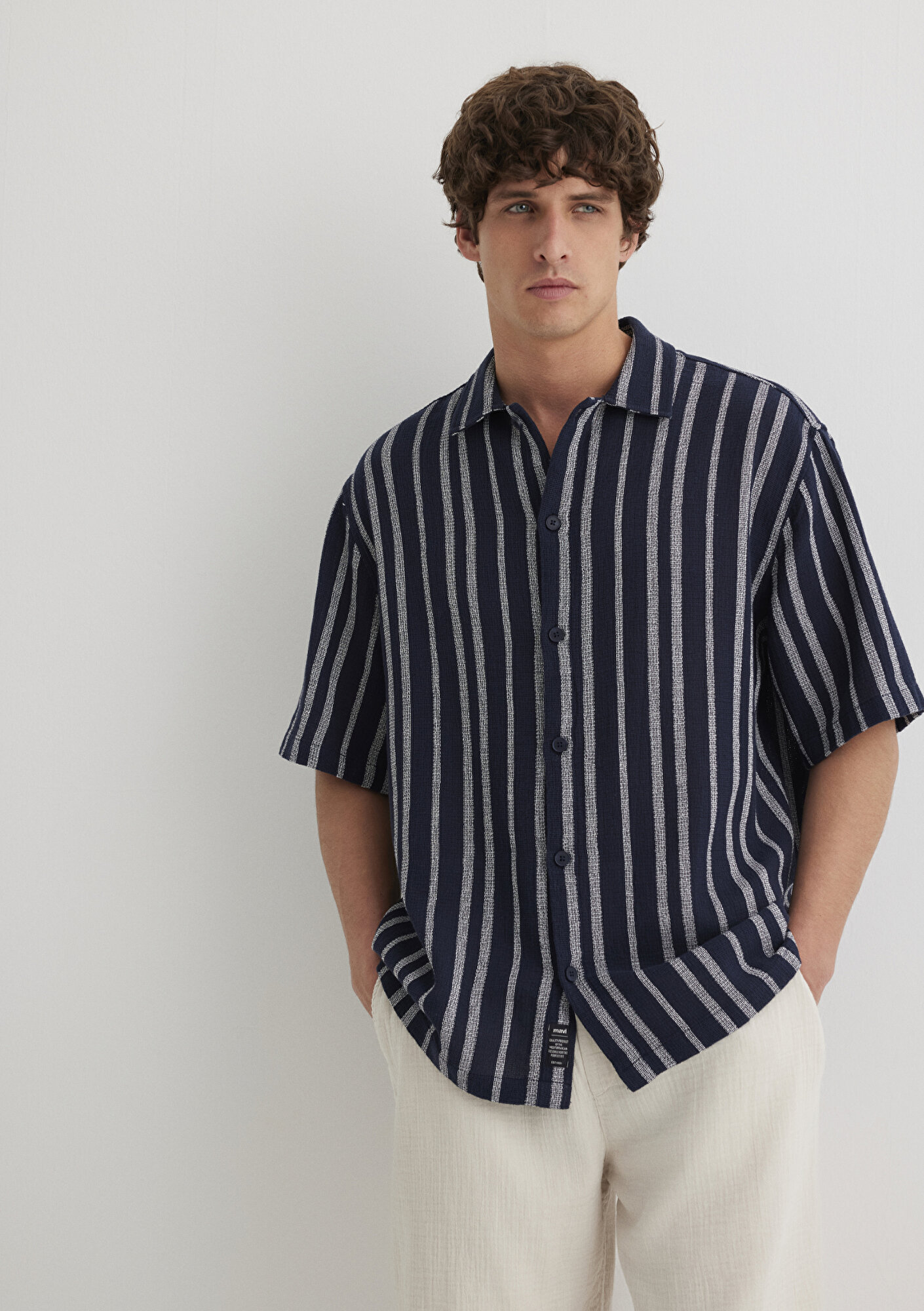 Mavi nin erkek koleksiyonundan Çizgili Lacivert Gömlek.