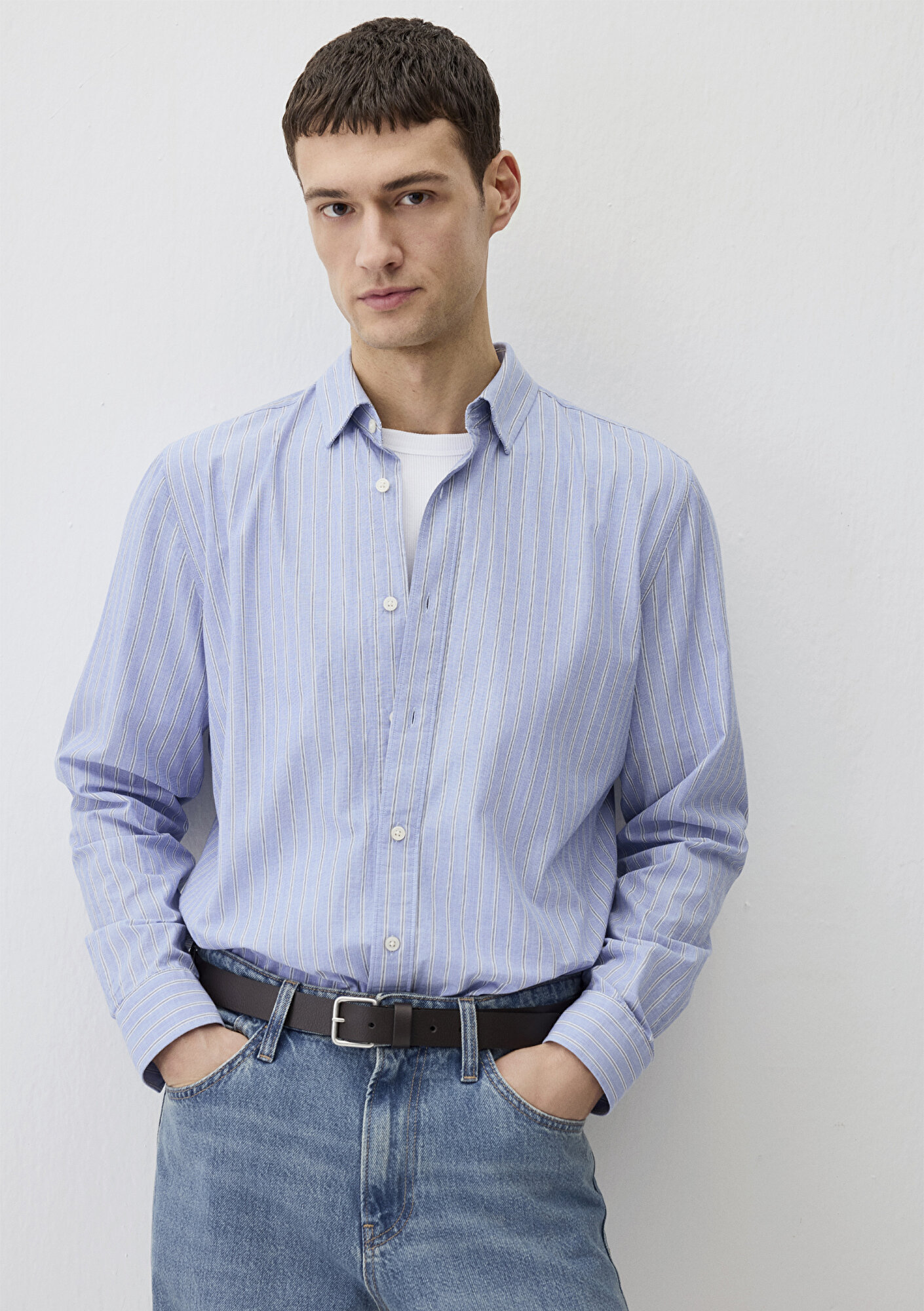 Sadeliğin özen ve kaliteyle buluştuğu Mavi Edition koleksiyonundan Çizgili Mavi Gömlek. Gizli düğmeli yaka.
