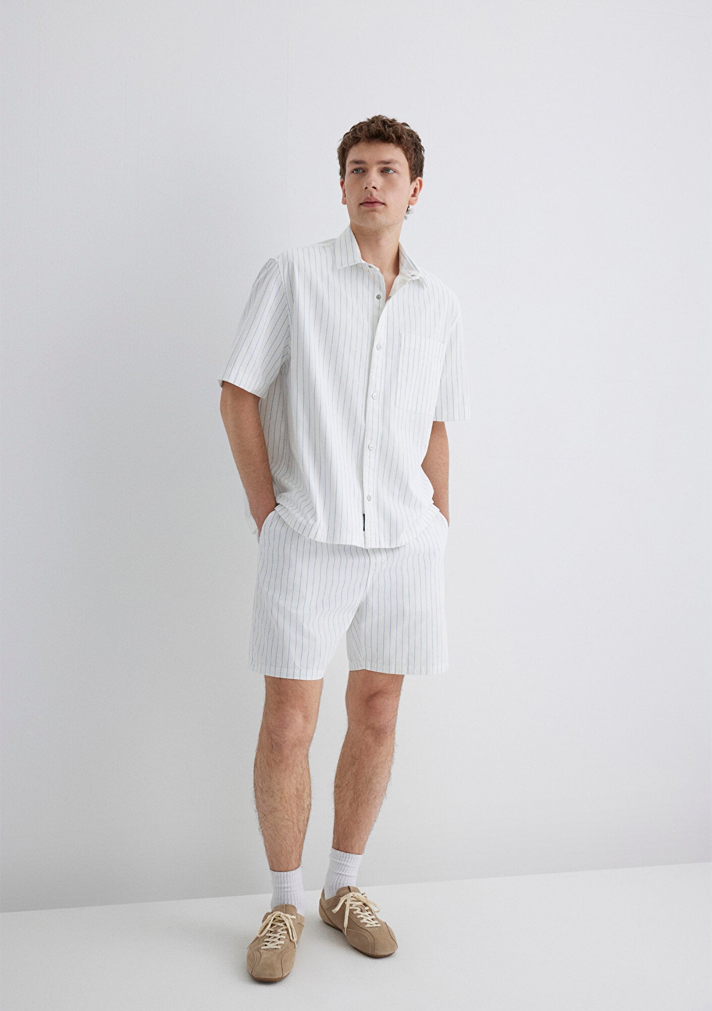 Mavi nin erkek koleksiyonundan Çizgili Mavi Şort.