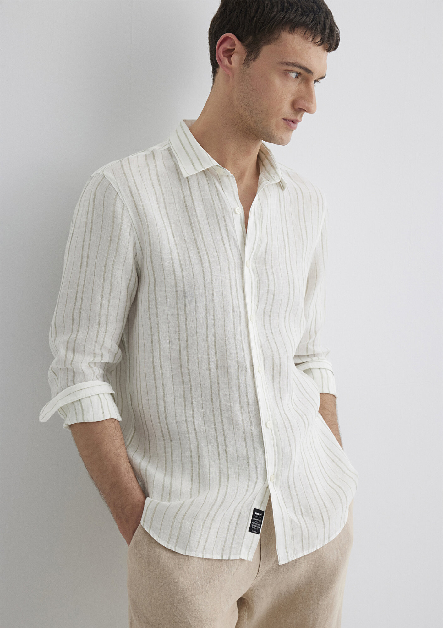 Mavi nin Linen Touch kolekisyonundan Çizgili Yeşil Gömlek. Doğal bir elyaf olan keten kumaşlar, diğer kumaş türlerine göre çok daha dayanıklıdır. Nemi hapseden yapısıyla ve iri gözenekli dokumasıyla vücuda hava aldırır. Yansıtıcı özelliği sayesinde de güneşte renk solması gibi şikayetleri minimuma indiren ketenlerle, yaz mevsiminde hem serin hem de cool kalın.