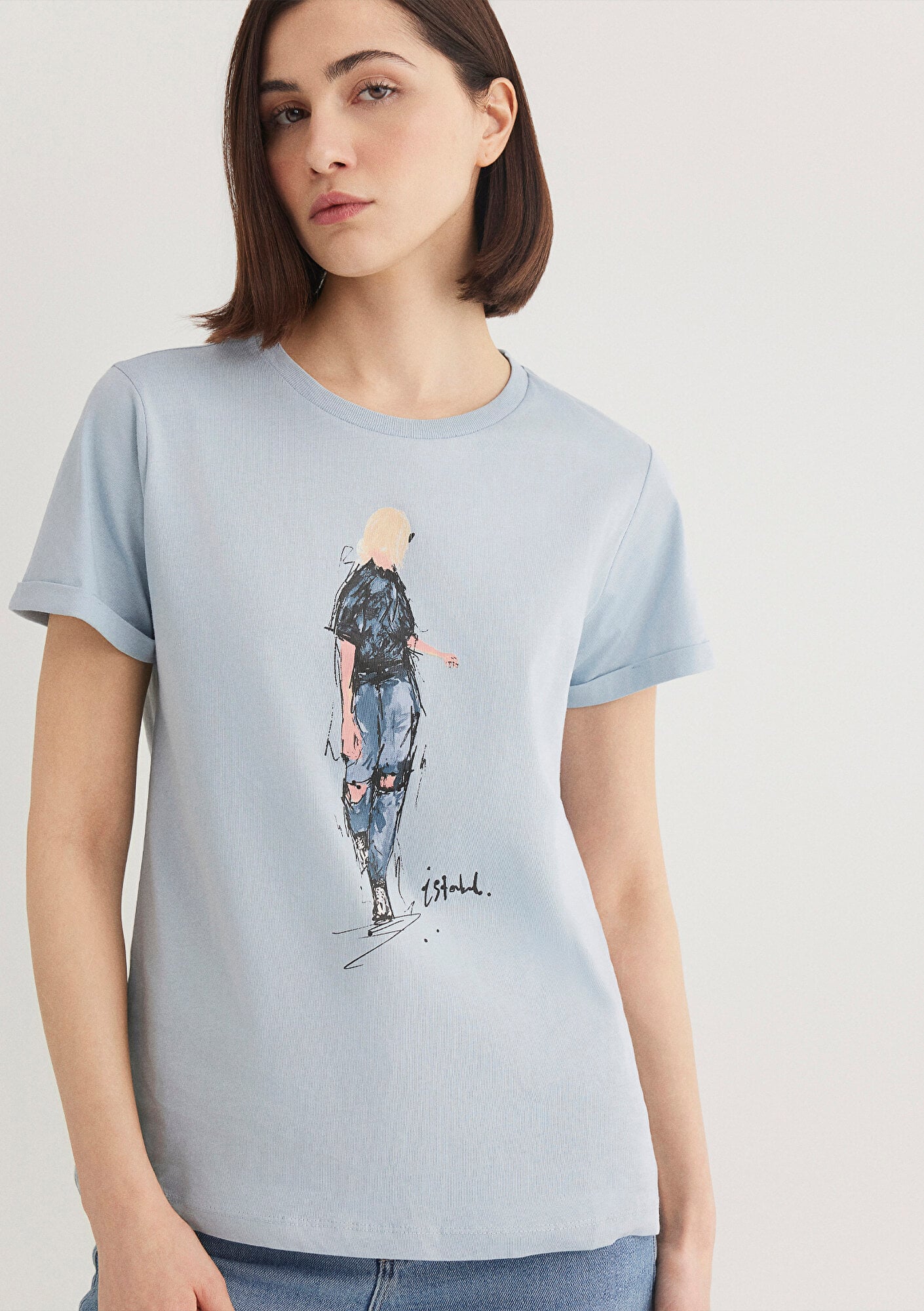 Denim Kız Baskılı Mavi İstanbul Tişört, yüzde yüz pamuklu orta ağırlıkta kumaştan üretilmiştir. Bisiklet yakalı ve kısa kollu olan bu grafik tişört, açık mavi rengi üzerinde siyah ve bej tonlarında stilize edilmiş bir kadın figürü baskısı taşımaktadır. Loose fit, rahat kesimi ile günlük kullanım için ideal olan bu tişört, modern ve şık bir görünüm sunar. Bu tişört, Mavi nin İstanbul Tişörtleri Serisi orijinal ürünüdür. İstanbul un yaratıcılık ve tasarıma verdiği ilhamı gösterir, İstanbul da doğmuş bir moda fenomeninin parçasıdır, İstanbul u sevenlerin yarattığı modanın bir simgesidir. Bu tişörtü giyen dünyanın neresinde olursa olsun, İstanbul dan bir parçayı içinde taşıyor demektir.