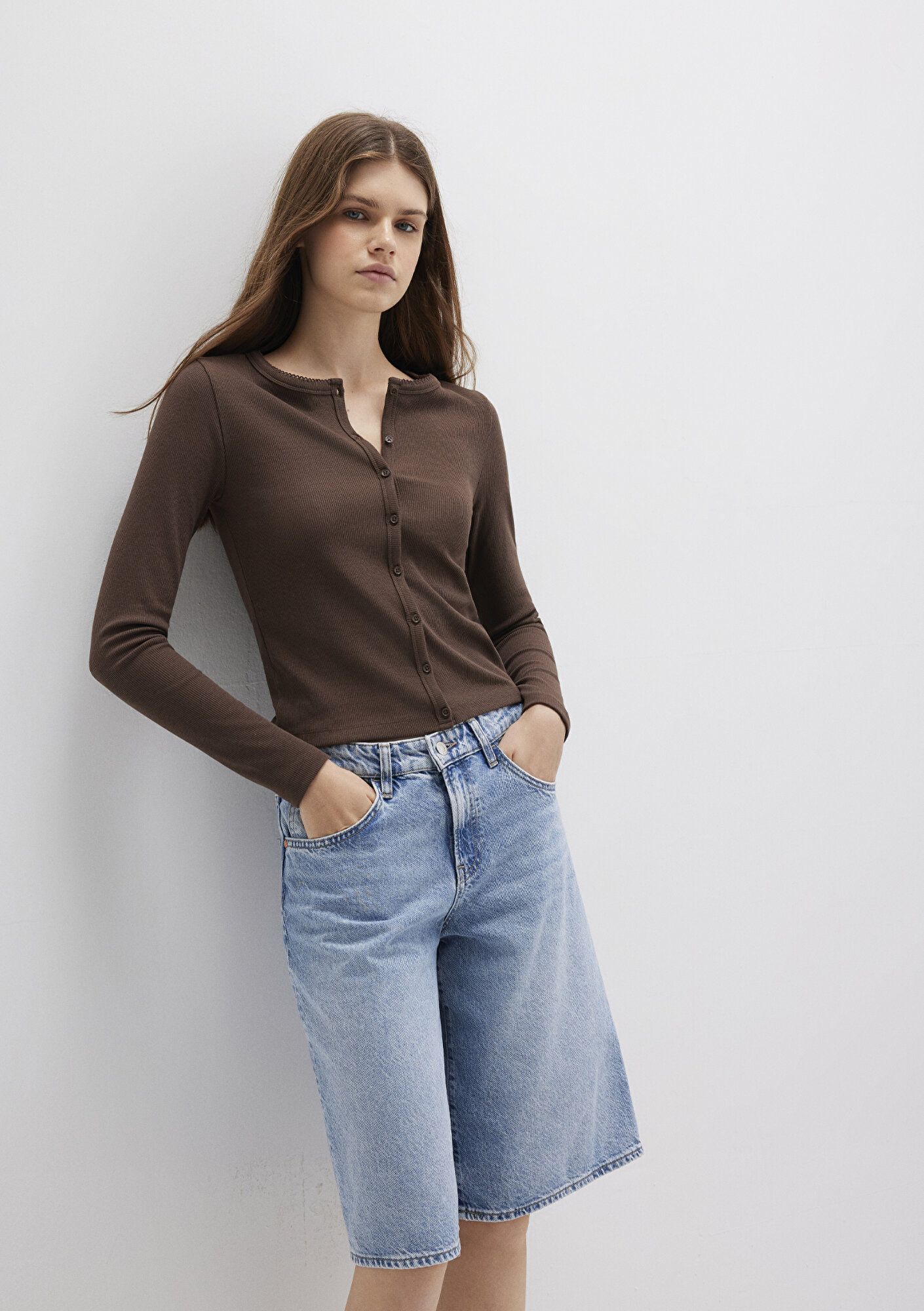 Mavi nin kadın koleksiyonundan Düğme Detaylı Kahverengi Uzun Kollu Tişört.