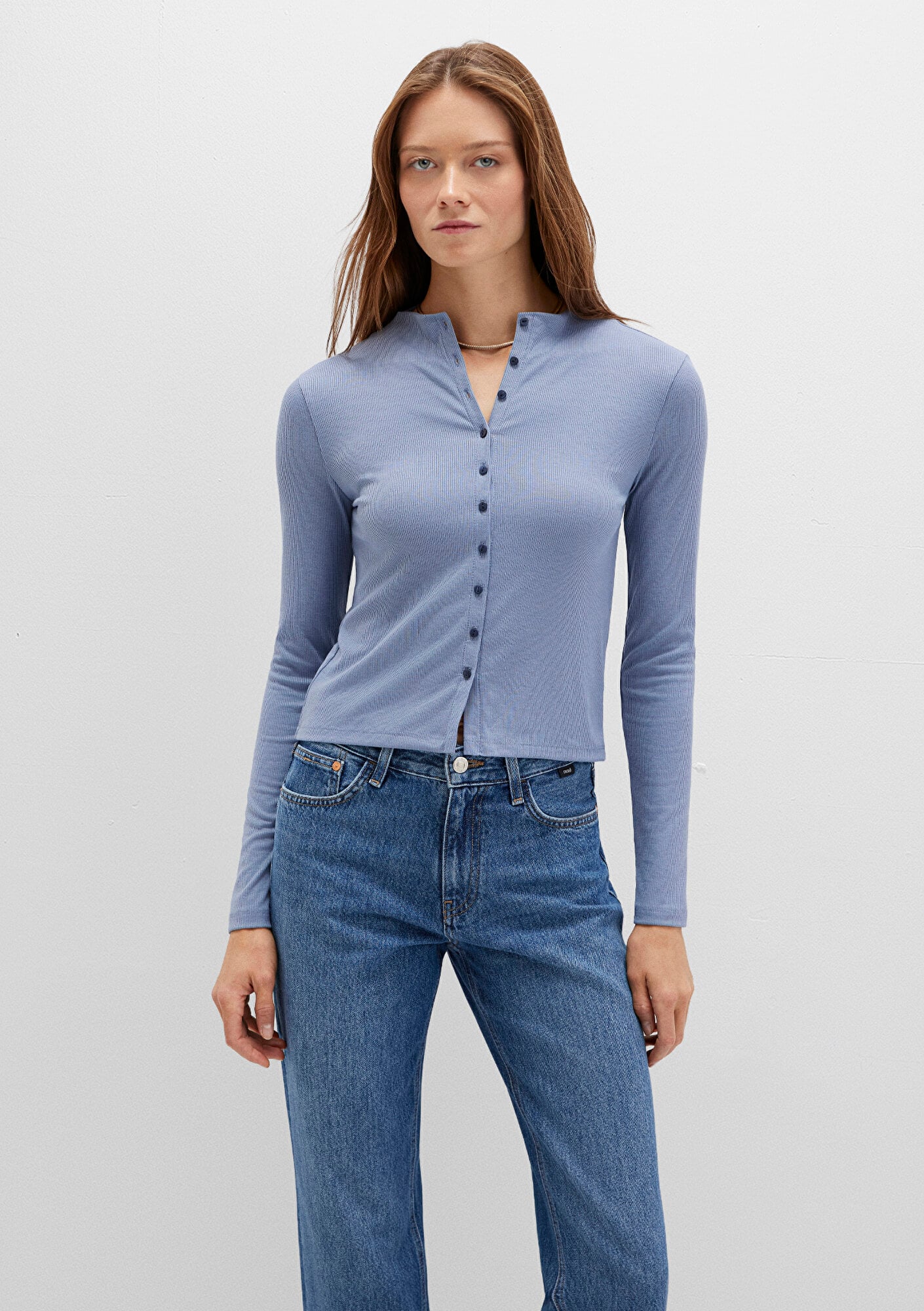 Mavi nin kadın koleksiyonundan Düğme Detaylı Mavi Tişört.