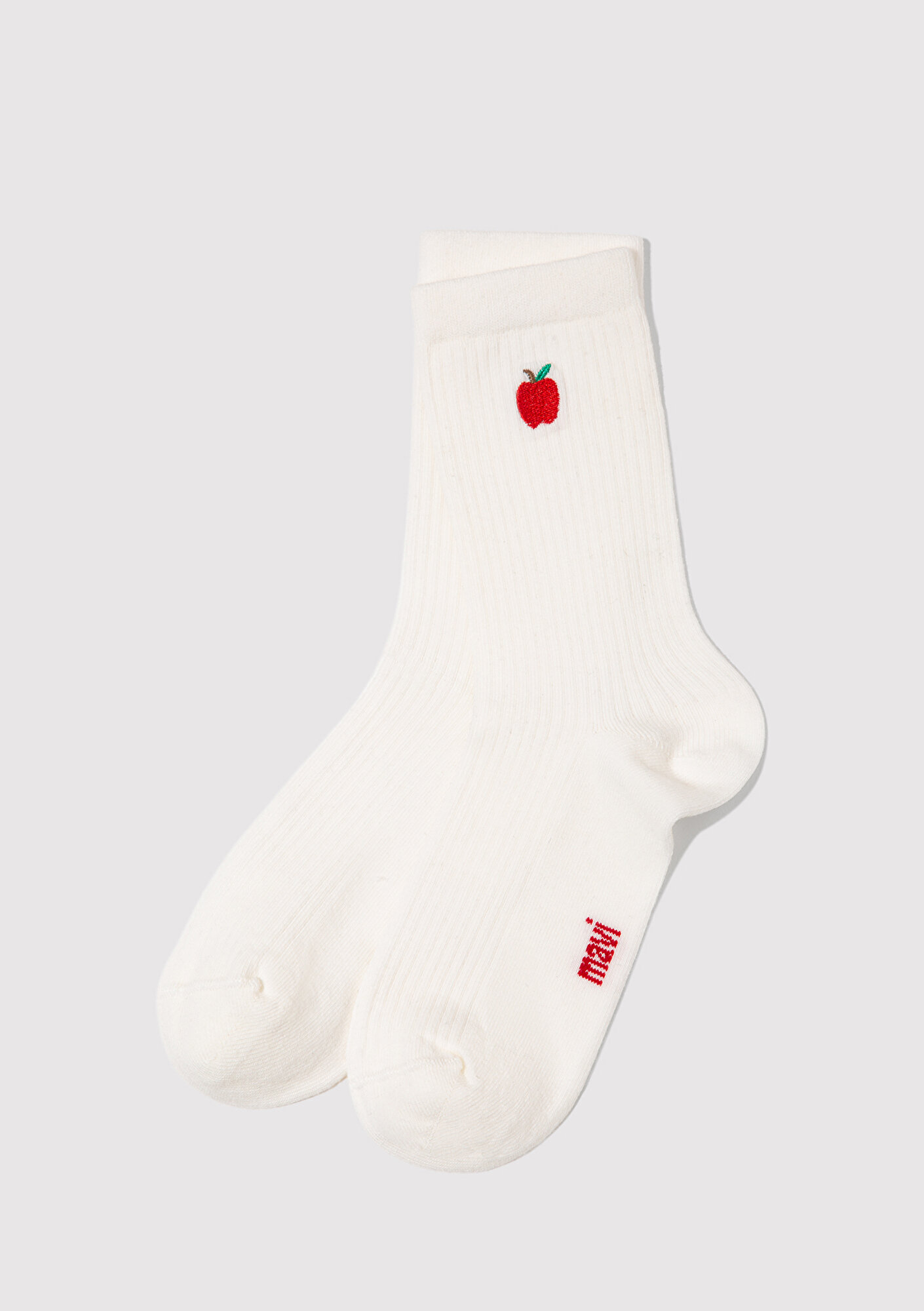 Mavi nin aksesuar koleksiyonundan Elma Nakışlı Ekru Soket Çorap.