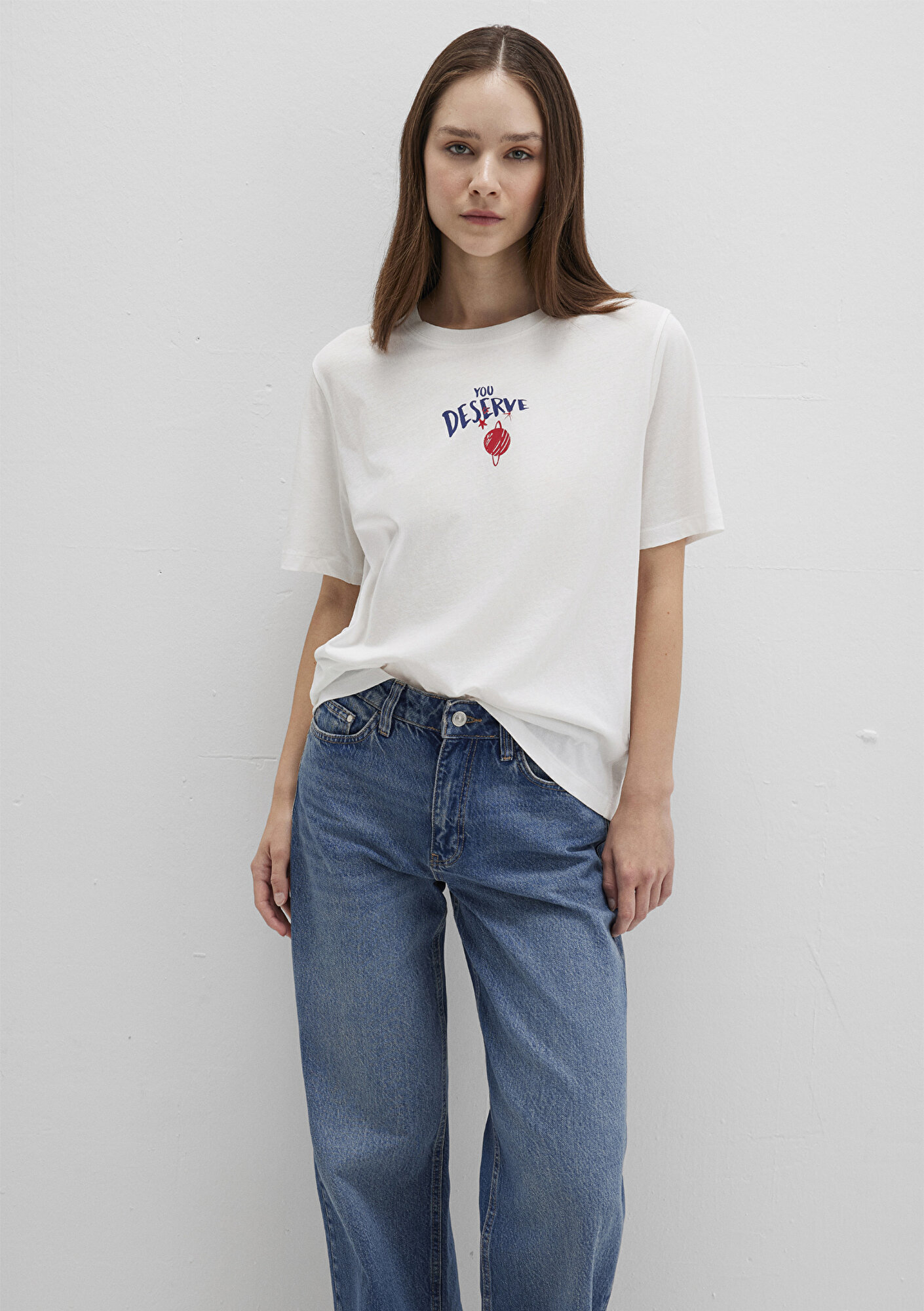 Mavi Gezegen Baksılı Beyaz Tişört Regular Fit / Normal Kesim 1613522-70057