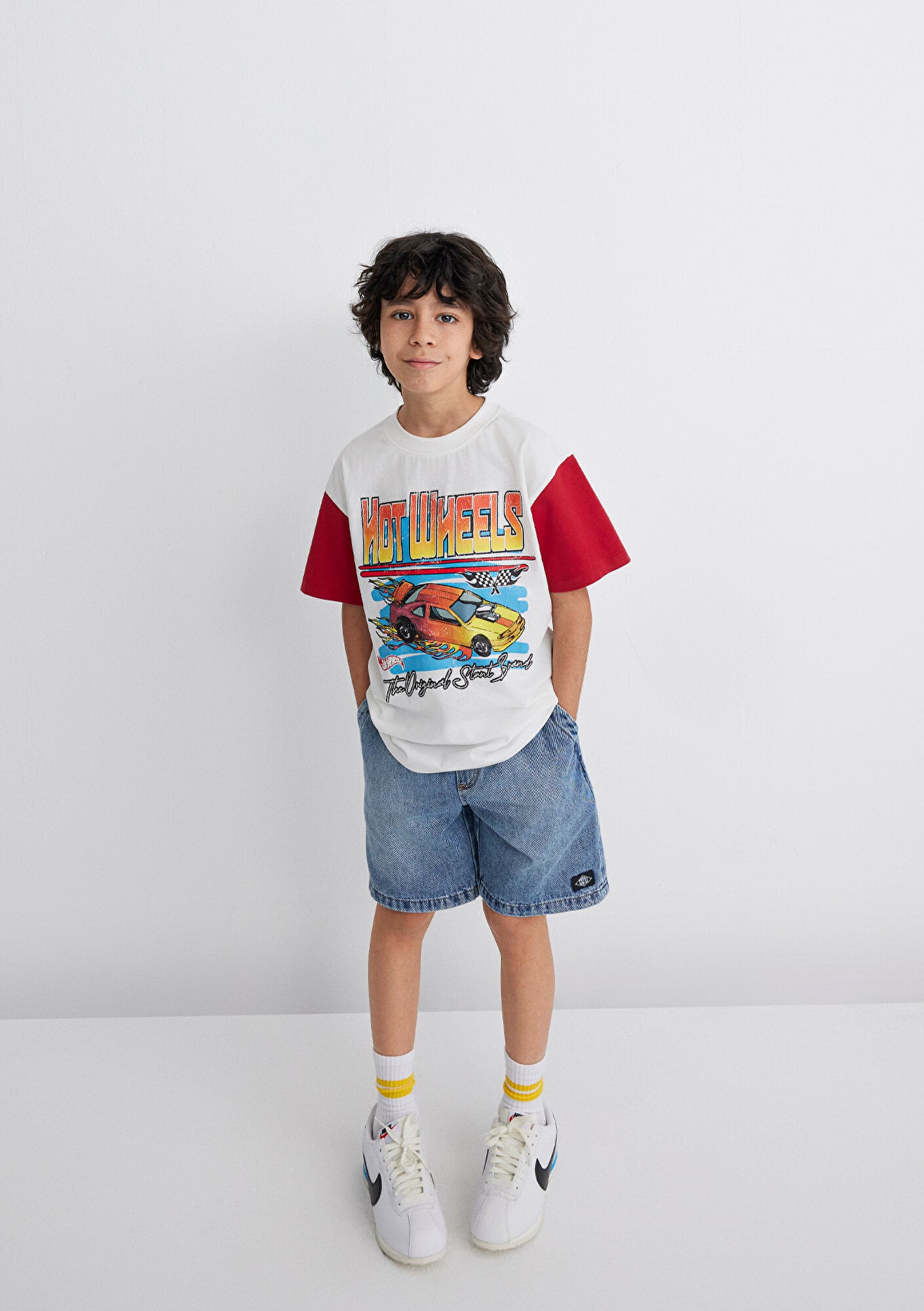 Mavi Hot Wheels Baskılı Ekru Tişört Loose Fit / Bol Rahat Kesim 6610304-70057