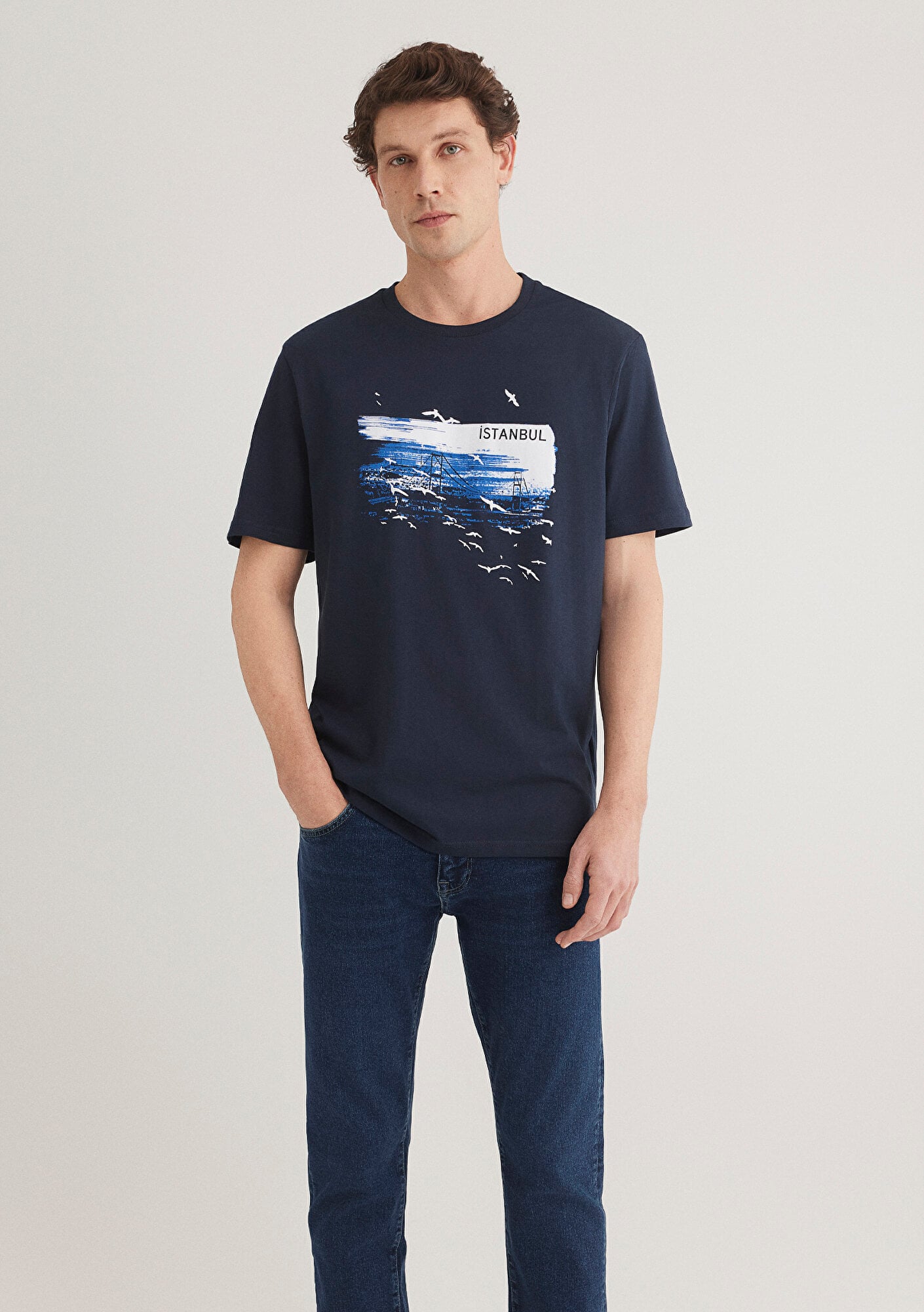 Mavi İstanbul Baskılı Lacivert Tişört Regular Fit / Normal Kesim 0611884-70490