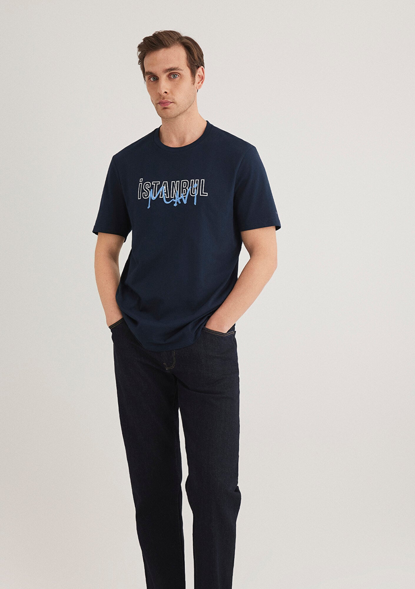 Mavi İstanbul Baskılı Lacivert Tişört Regular Fit / Normal Kesim 067114-34319