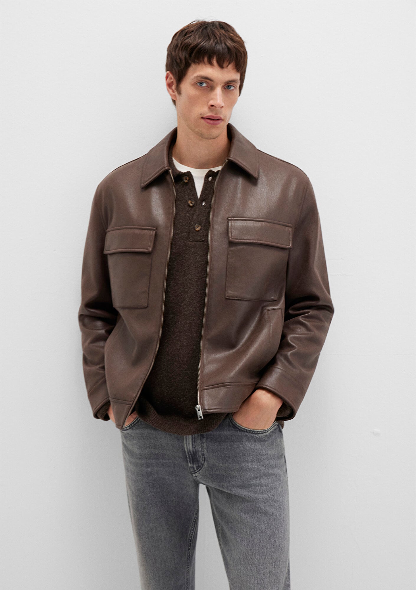 Mavi nin erkek koleksiyonundan Kahverengi Suni Deri Ceket.