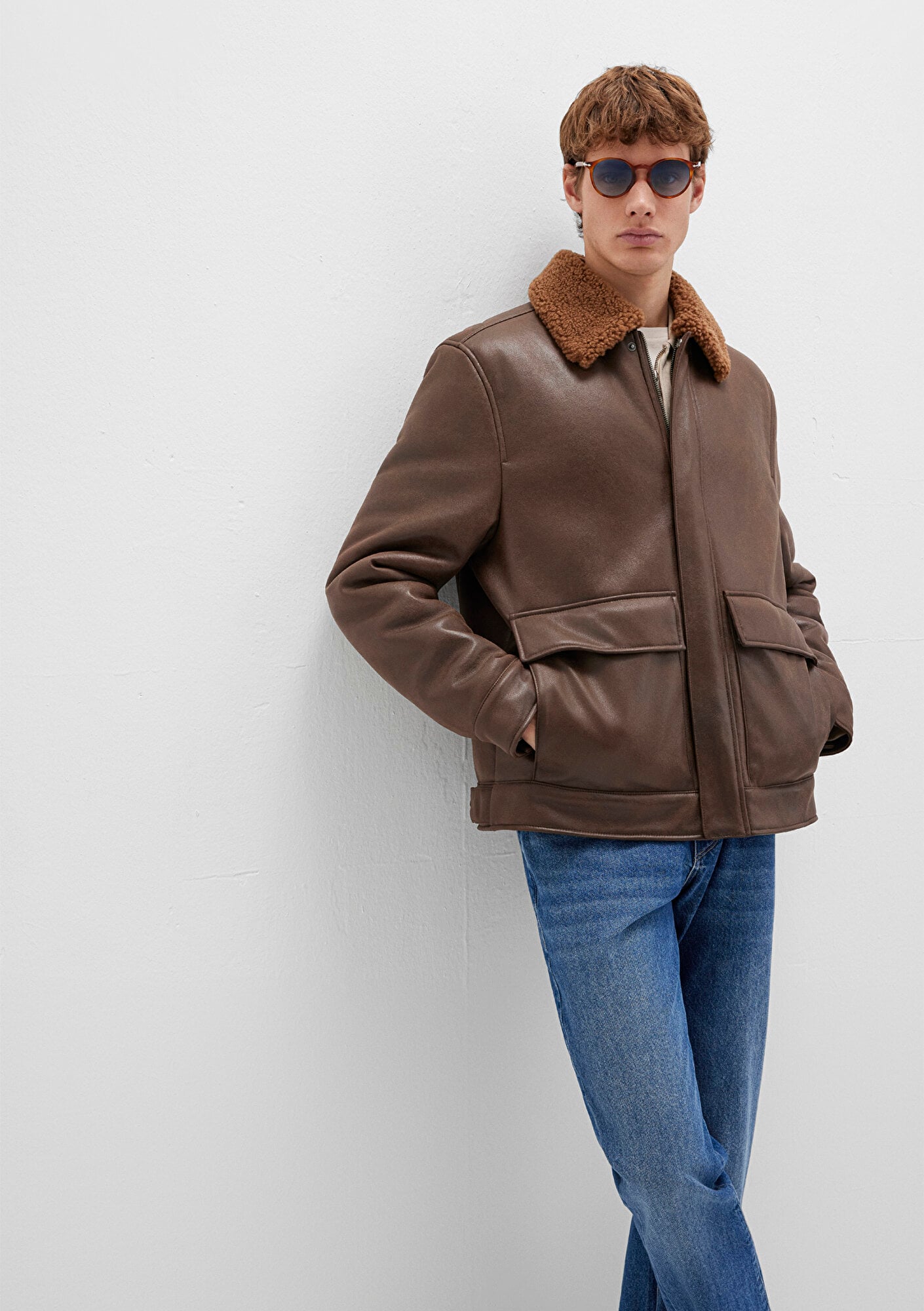 Mavi nin dış giyim koleksiyonundan Kahverengi Suni Kürk Detaylı Suni Deri Ceket. İki adet yan cep, iki adet çıt çıt kapamalı ön cep, çıt çıt ile ayarlanabilir manşet ve etek, bir adet iç cep, içi kol dahil full sherpa.