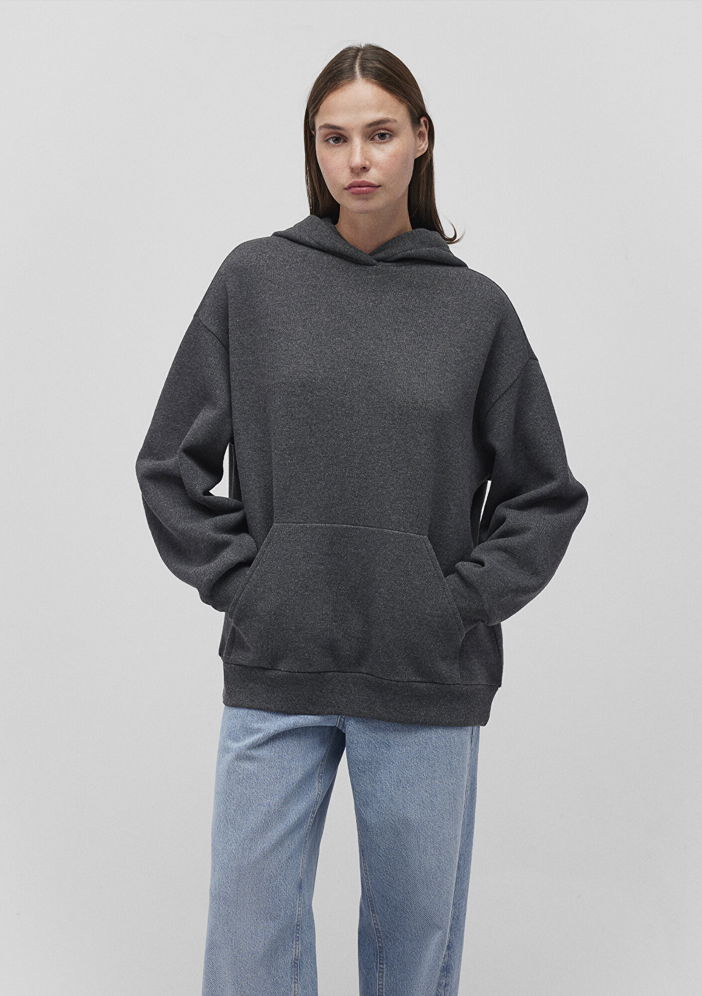 Mavi nin kadın koleksiyonundan Kapüşonlu Antrasit Sweatshirt. Şardonlu, kapüşonlu, içi şardonlu kanguru cep.