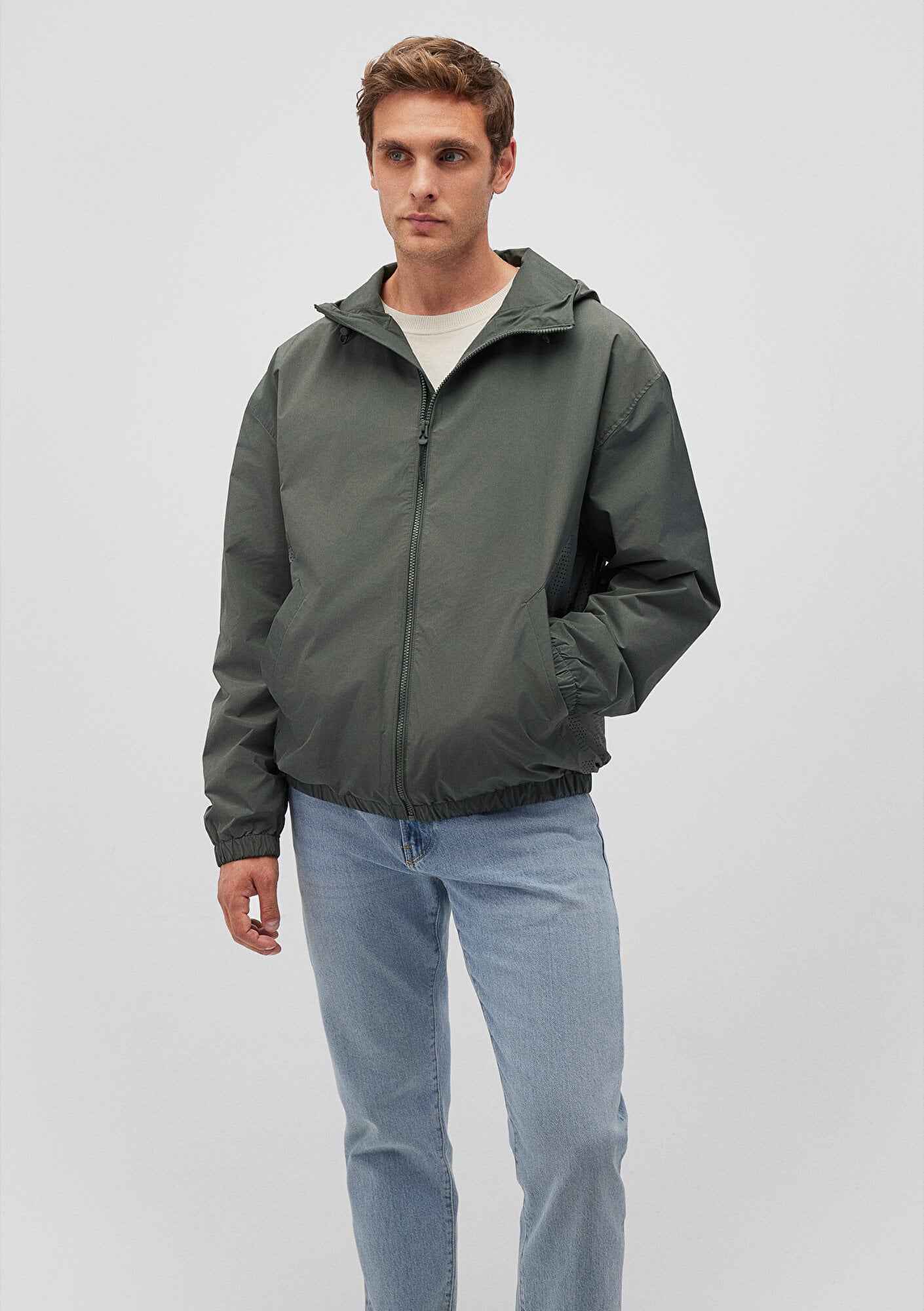 Mavi nin dış giyim koleksiyonundan Kapüşonlu Haki Ceket. İki adet yan ve bir adet iç cep, stoperli iple ayarlanabilir sabit kapüşon.