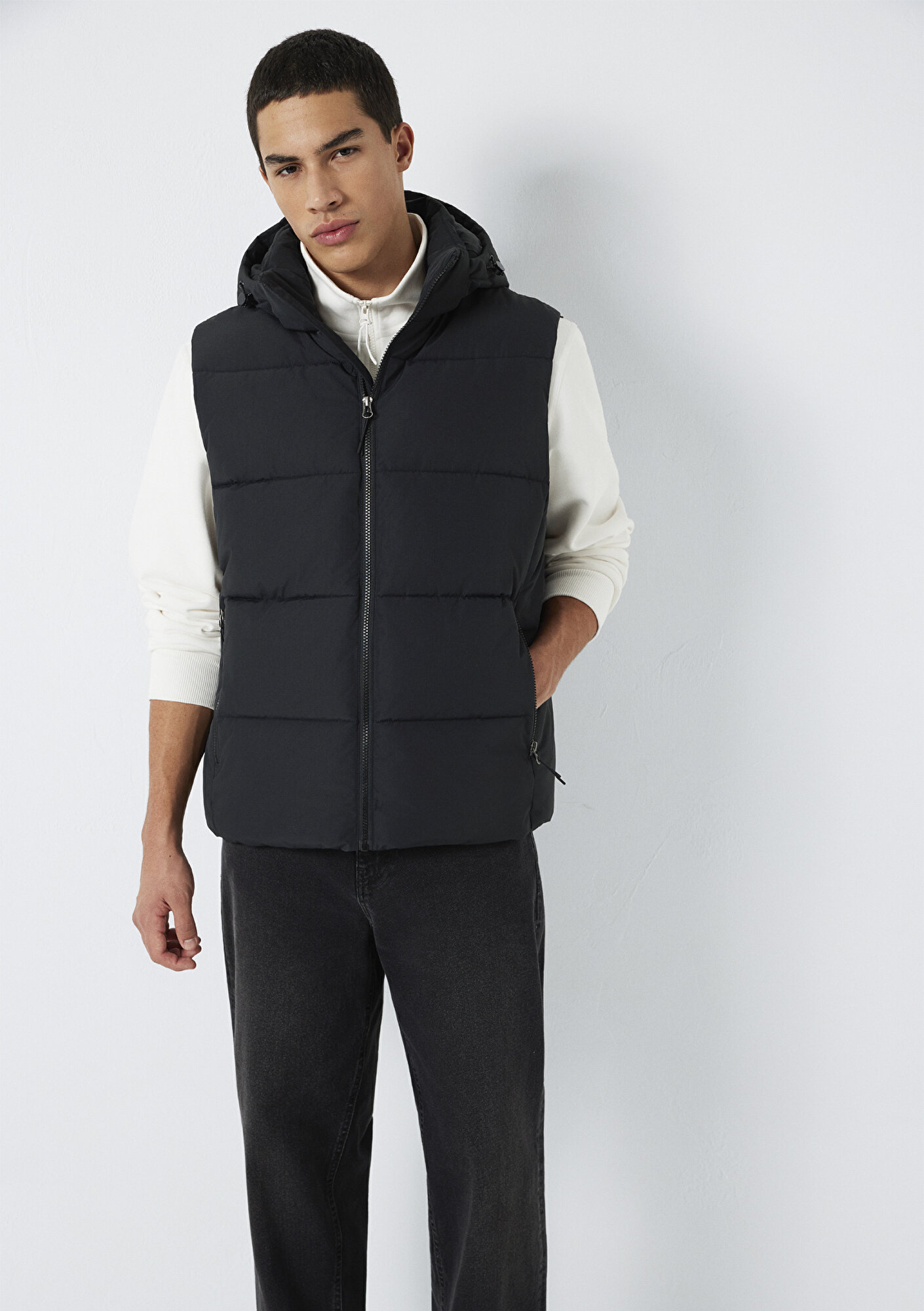 Mavi nin erkek koleksiyonundan Kapüşonlu Siyah Yelek.