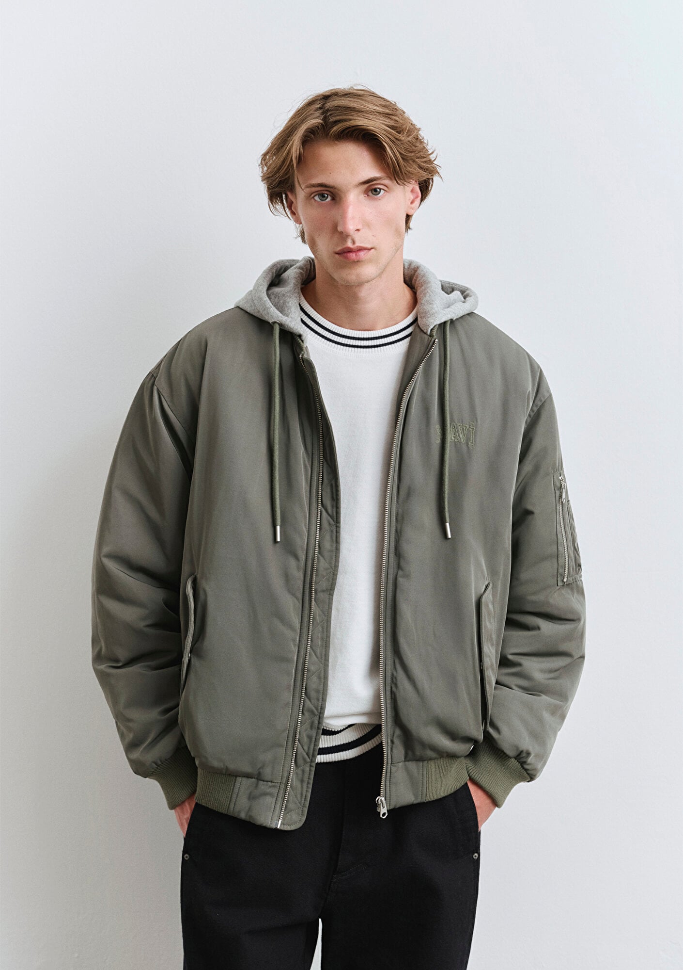 Mavi nin erkek koleksiyonundan Kapüşonlu Yeşil Mont.