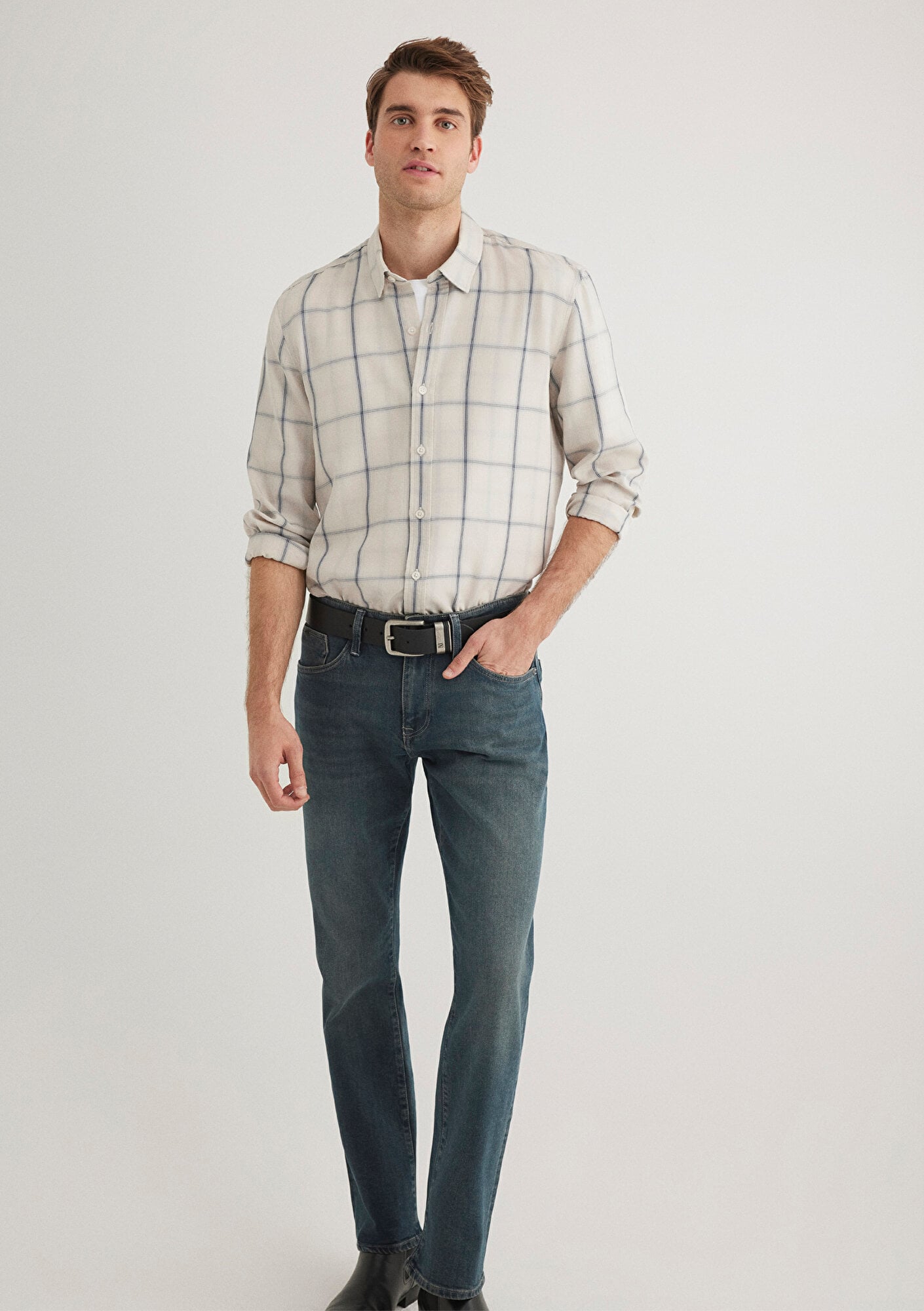 Mavi Kareli Ekru Tencel TM Liyosel Gömlek Slim Fit / Dar Kesim 0211447-89583