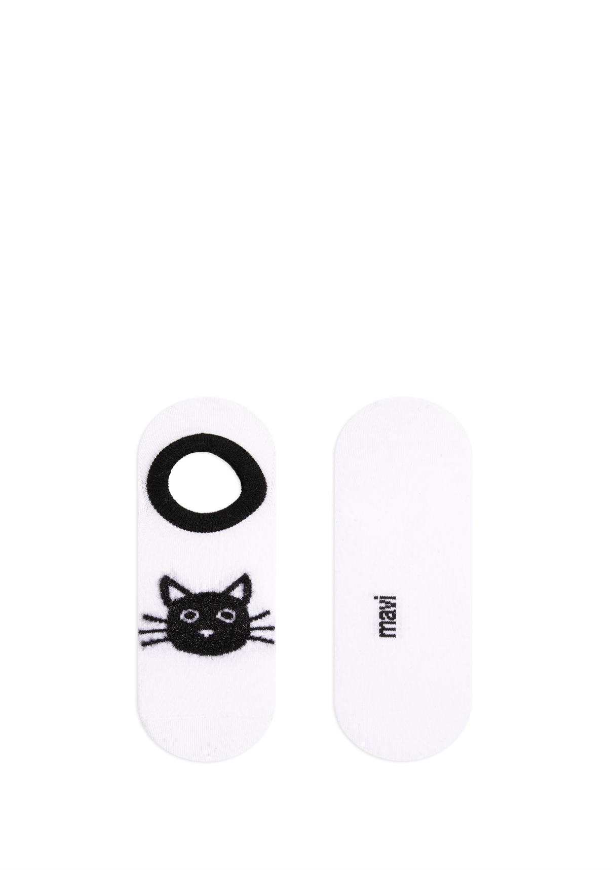 Mavi nin aksesuar koleksiyonundan Kedi Baskılı Beyaz Babet Çorap.