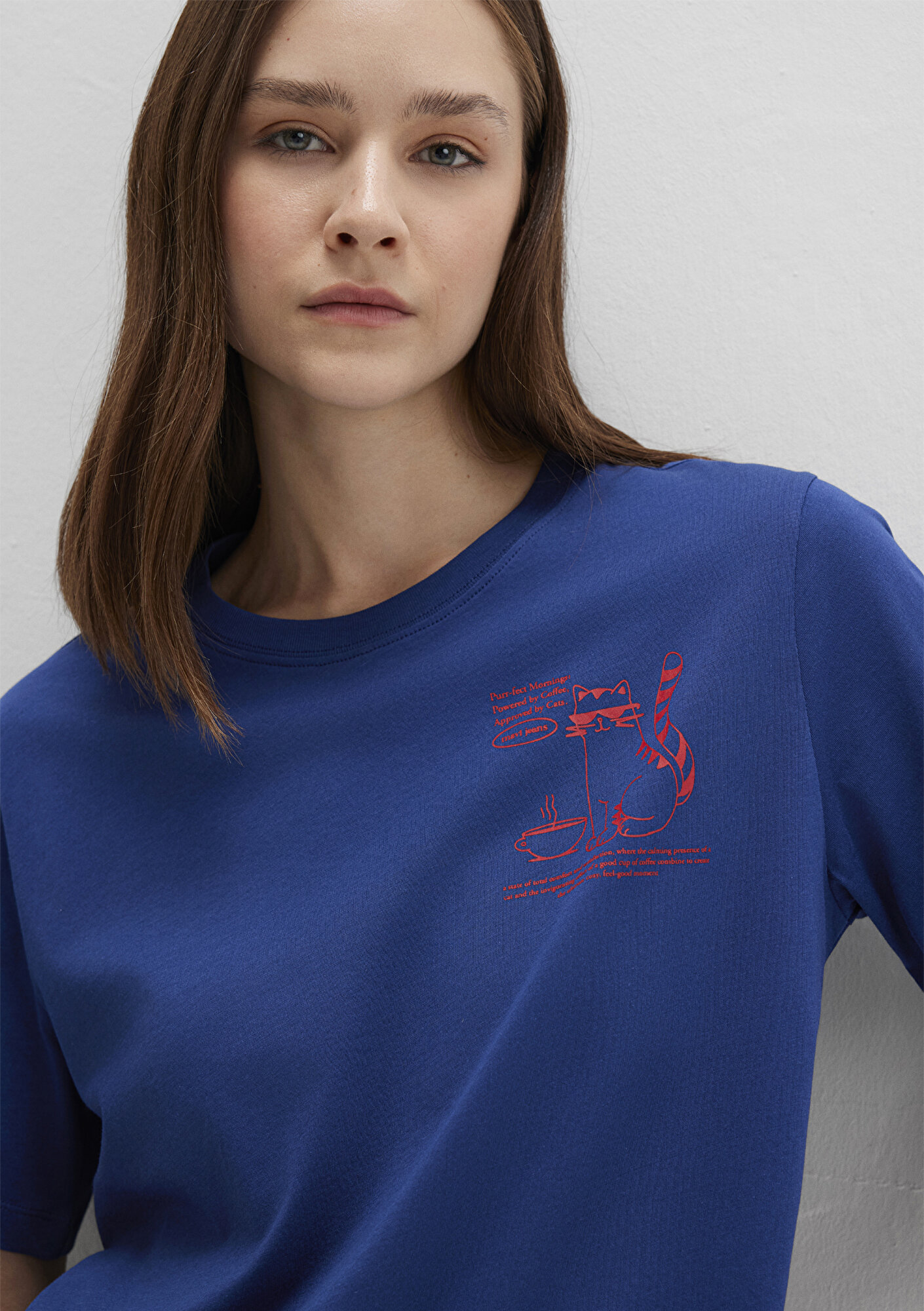 Mavi Kedi Baskılı Lacivert Tişört Regular Fit / Normal Kesim 1613474-70899