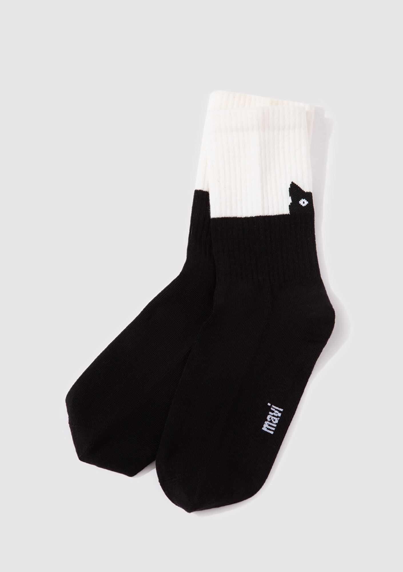 Mavi nin aksesuar koleksiyonundan Kedi Baskılı Siyah Soket Çorap.