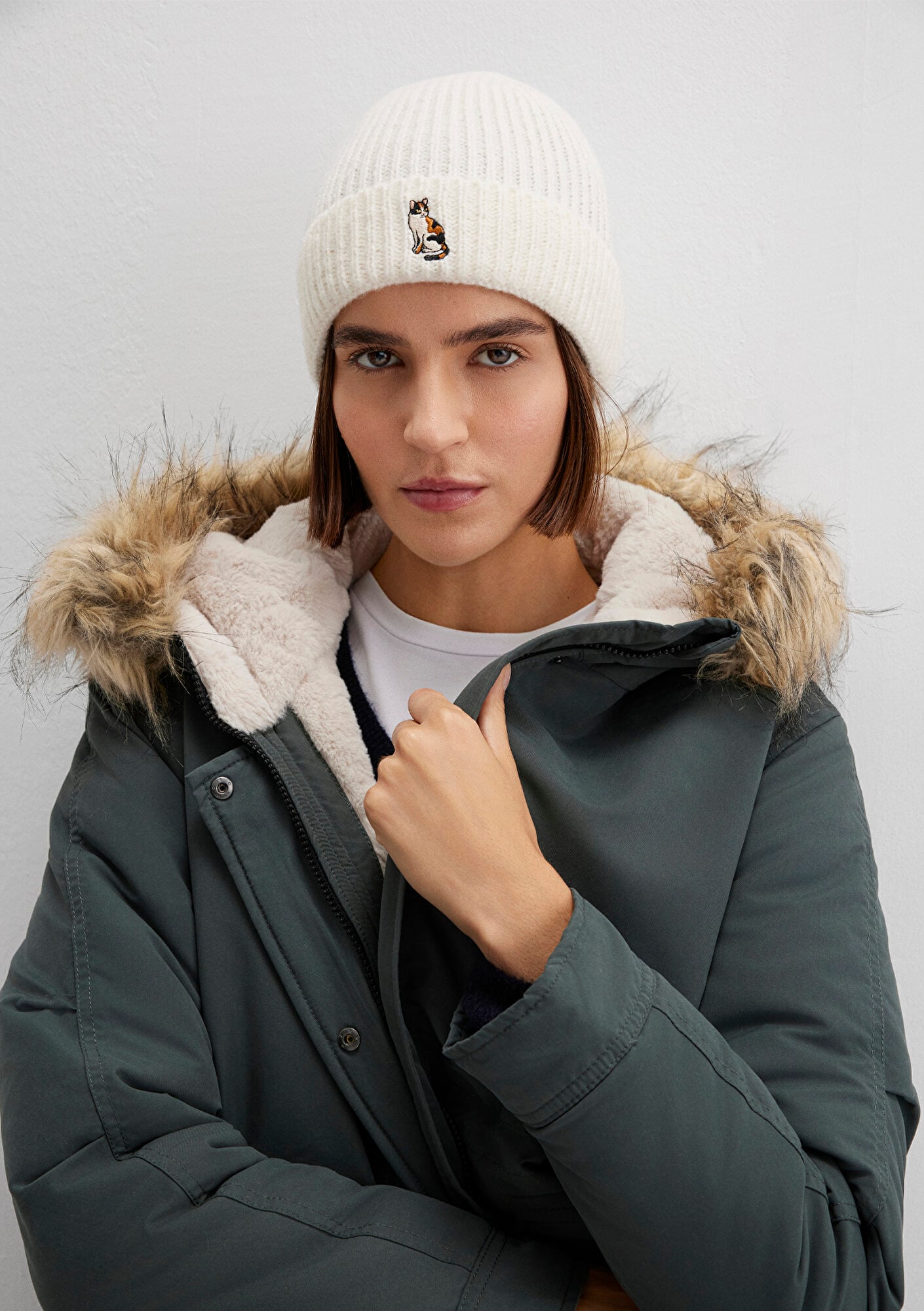 Mavi nin aksesuar koleksiyonundan Kedi Nakışlı Ekru Bere.