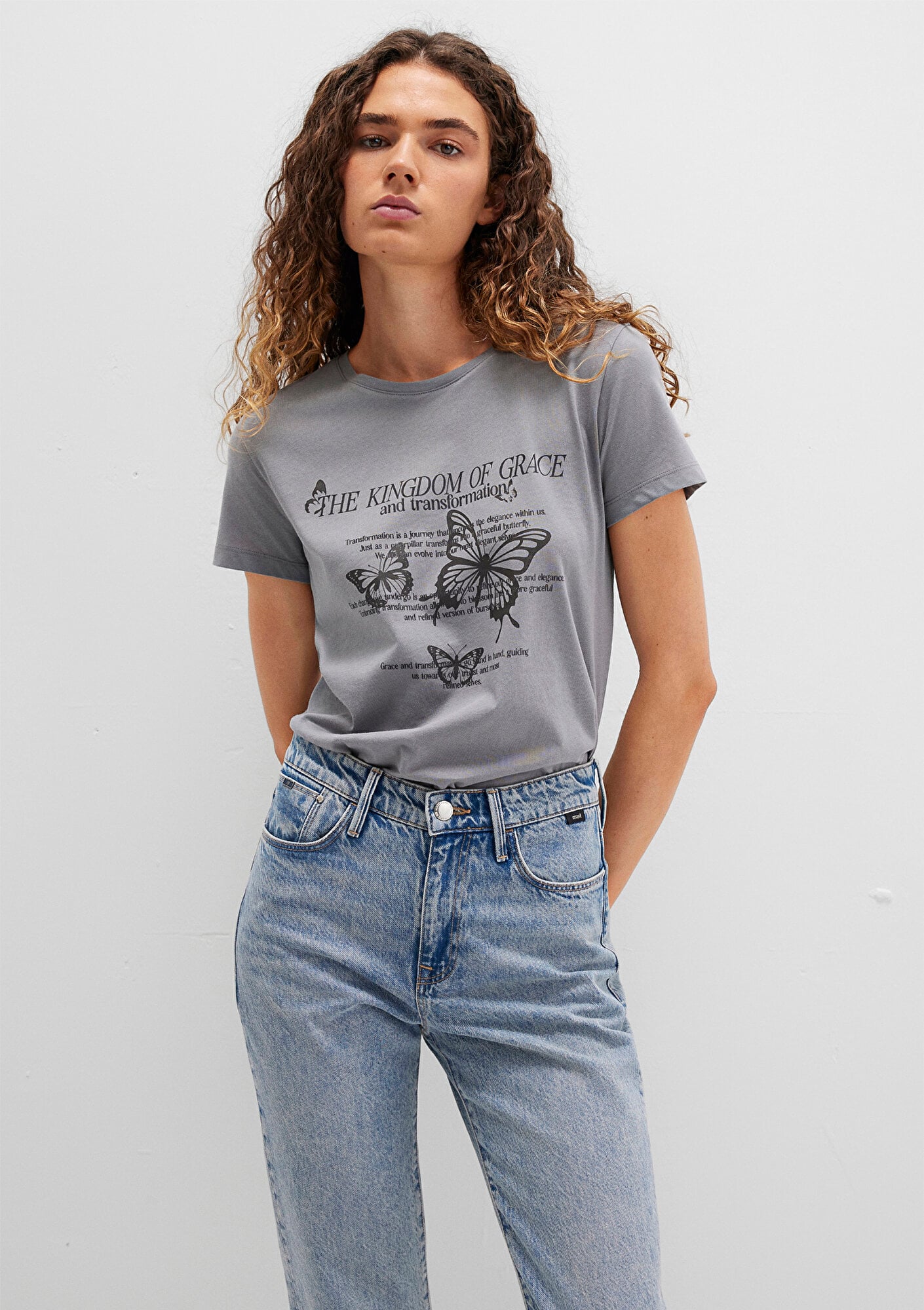Mavi nin kadın koleksiyonundan Kelebek Baskılı Gri Tişört.