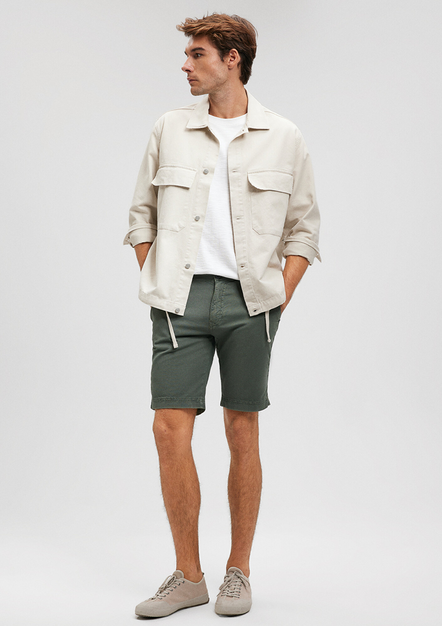 Mavi nin erkek koleksiyonundan Keten Karışımlı Yeşil Chino Şort. Doğal bir elyaf olan keten kumaşlar, diğer kumaş türlerine göre çok daha dayanıklıdır. Nemi hapseden yapısıyla ve iri gözenekli dokumasıyla vücuda hava aldırır. Yansıtıcı özelliği sayesinde de güneşte renk solması gibi şikayetleri minimuma indiren ketenlerle, yaz mevsiminde hem serin hem de cool kalın.