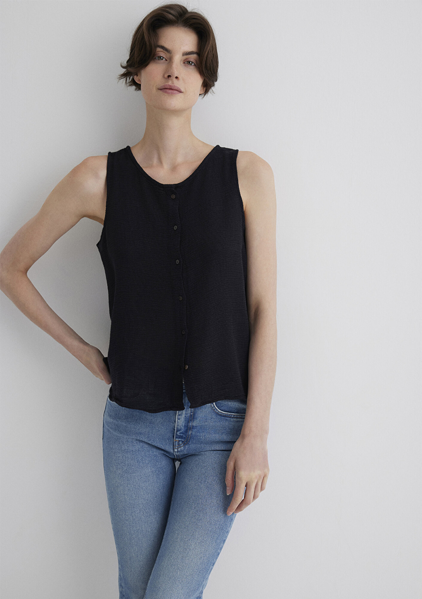 Mavi nin kadın koleksiyonundan Kolsuz Siyah Bluz.