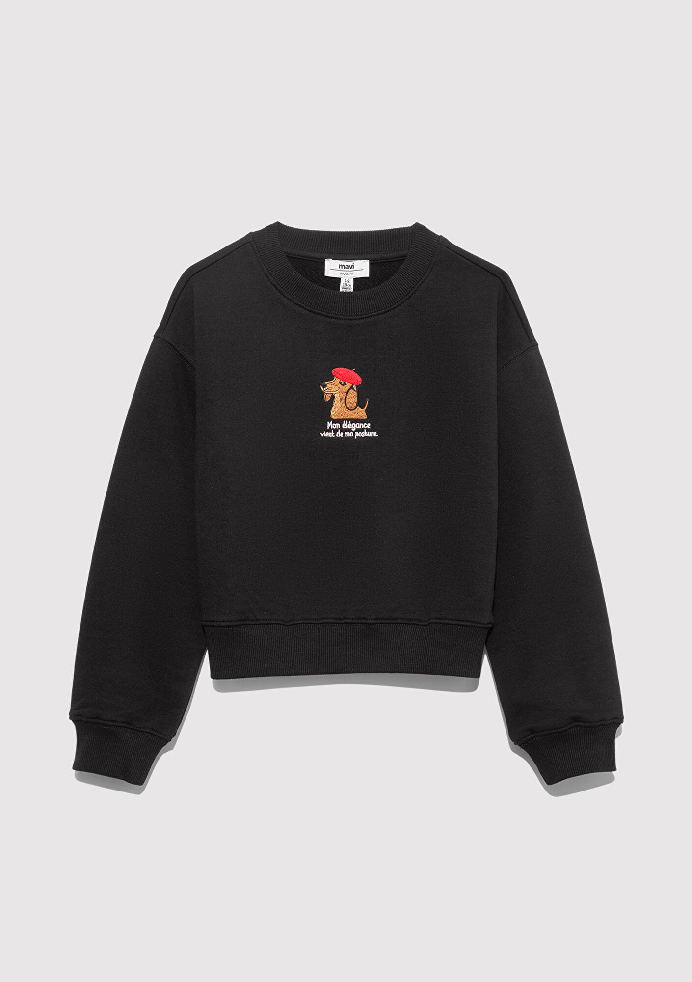 Mavi nin kız çocuk koleksiyonundan Köpek Nakışlı Siyah Sweatshirt.