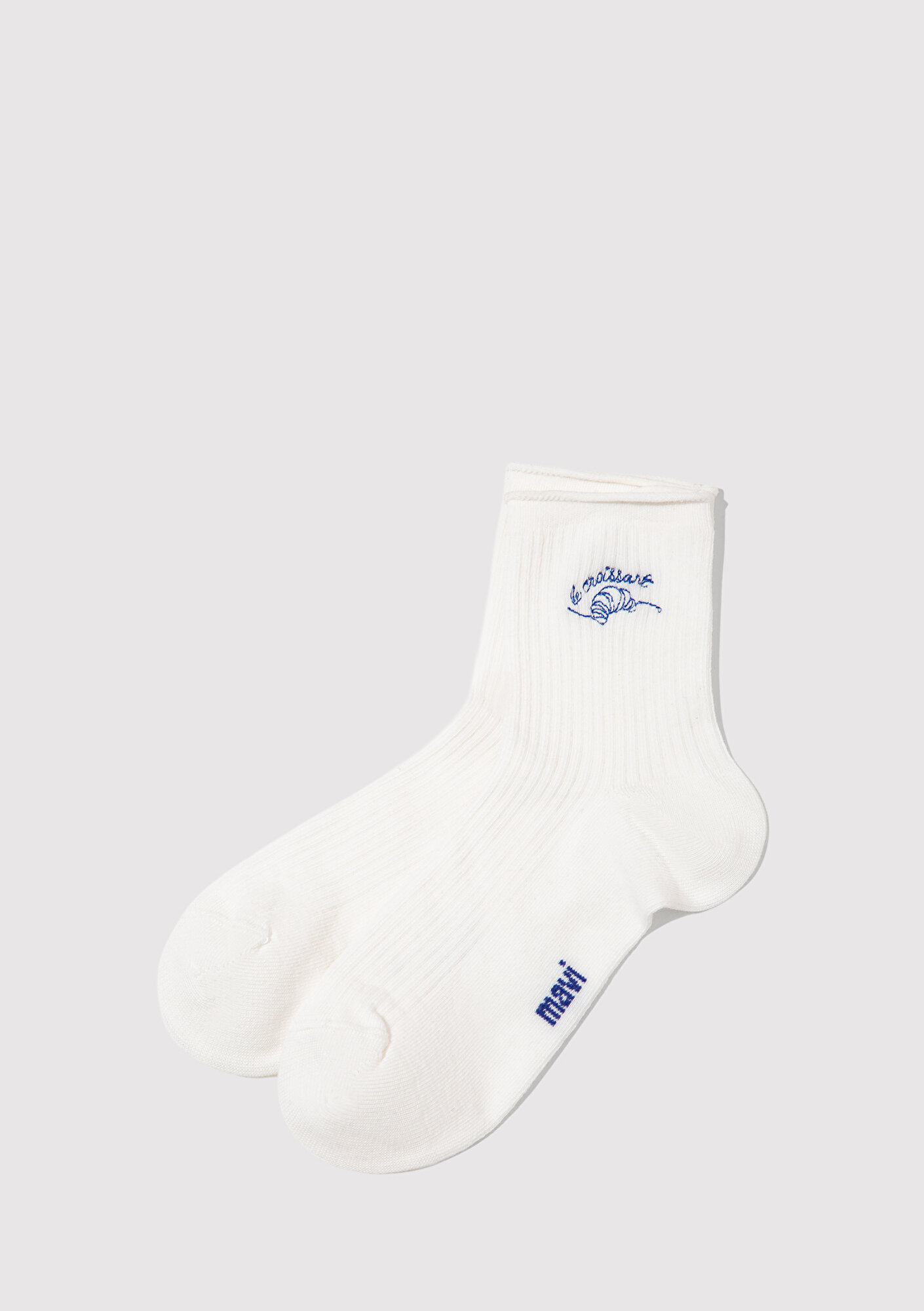 Mavi nin aksesuar koleksiyonundan Kruvasan Nakışlı Beyaz Soket Çorap.