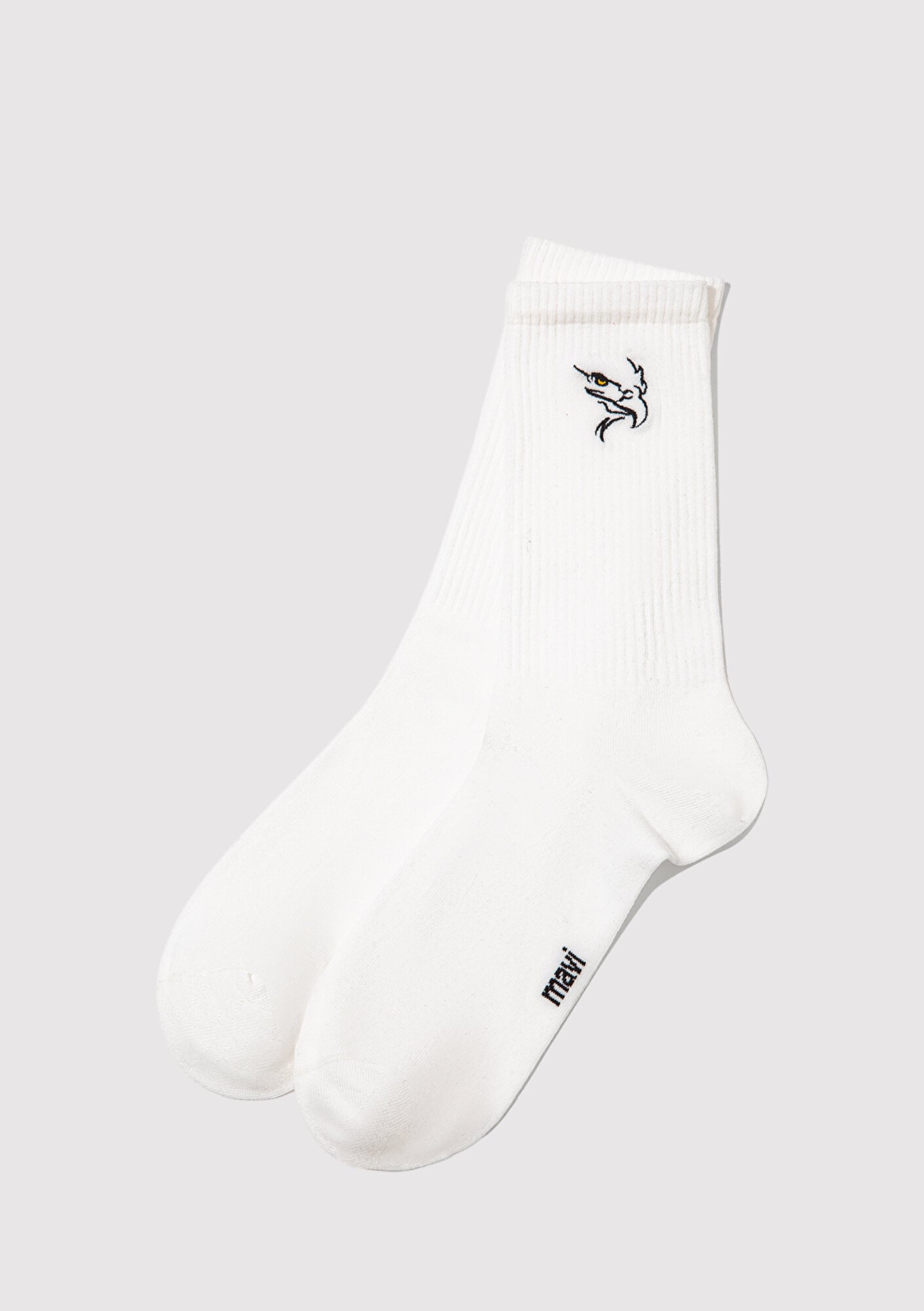 Mavi nin aksesuar koleksiyonundan Kuş Nakışlı Beyaz Soket Çorap.