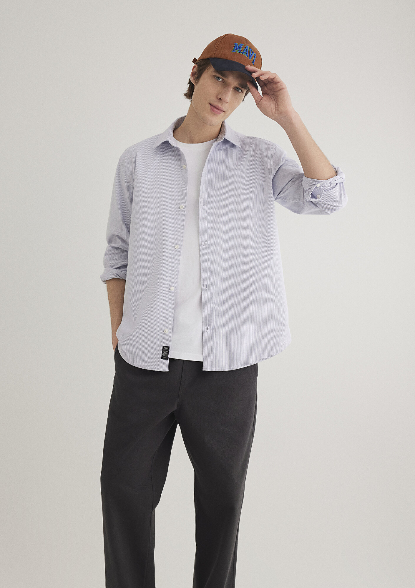 Mavi nin erkek koleksiyonundan Lacivert Çizgili Beyaz Gömlek.