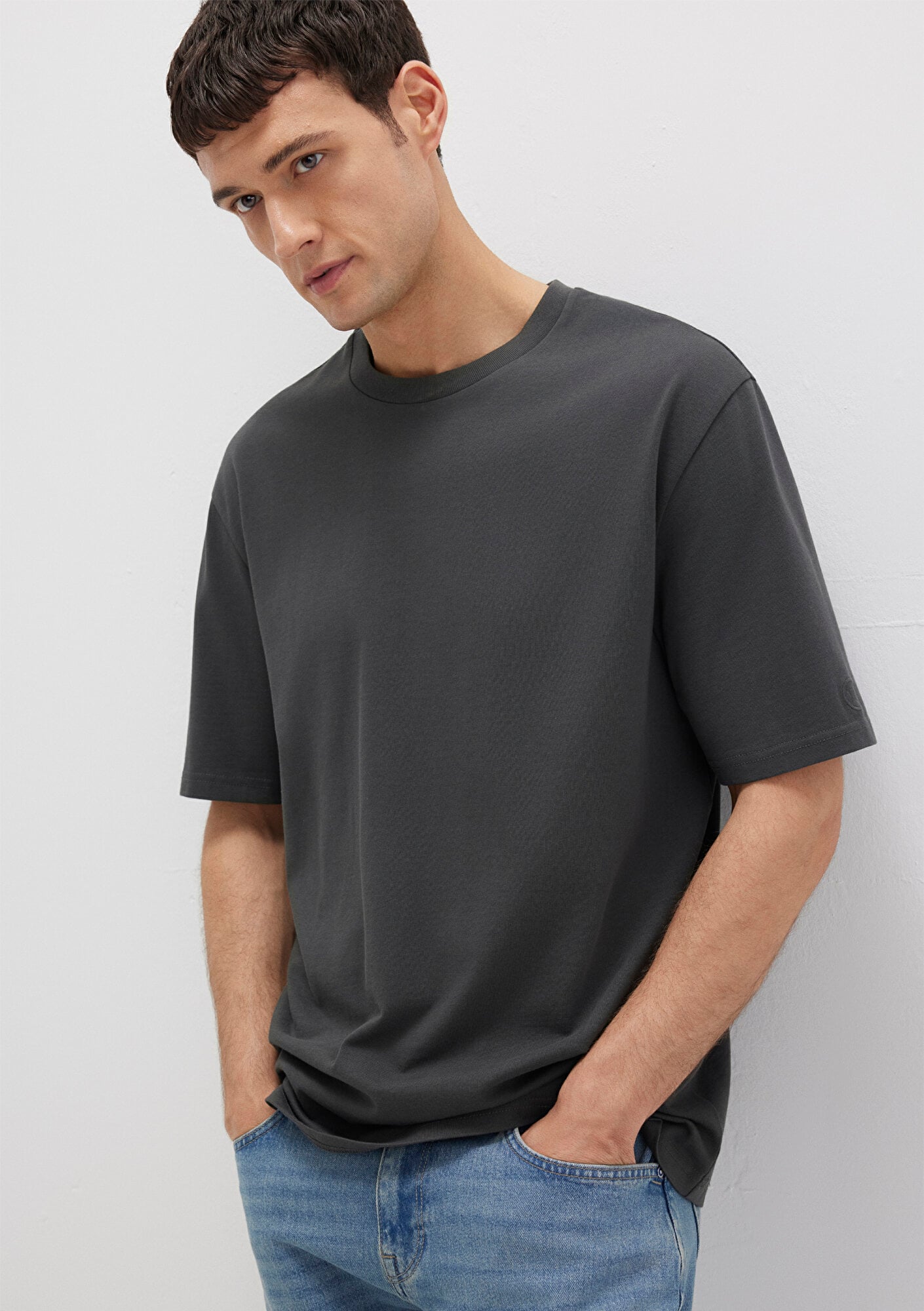 Mavi Logo Kol Detaylı Antrasit Basic Tişört Loose Fit / Bol Rahat Kesim 0611924-70092